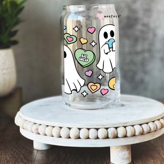 Ghost Conversation Hearts Valentine's Day 16oz Libbey Glass Can UV DTF or Sublimation Cup Wrap - Decal Transfer