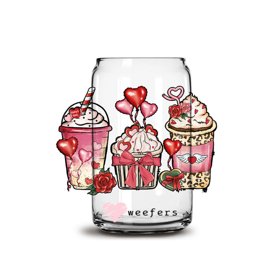 Coffee Latte Cup Cakes Valentine's Day 16oz Libbey Glass Can UV DTF or Sublimation Cup Wrap - Decal Transfer