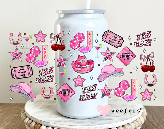 Pink Warning Cow Girls Ahead UV DTF Cup Wrap - Weefers Exclusive Wrap