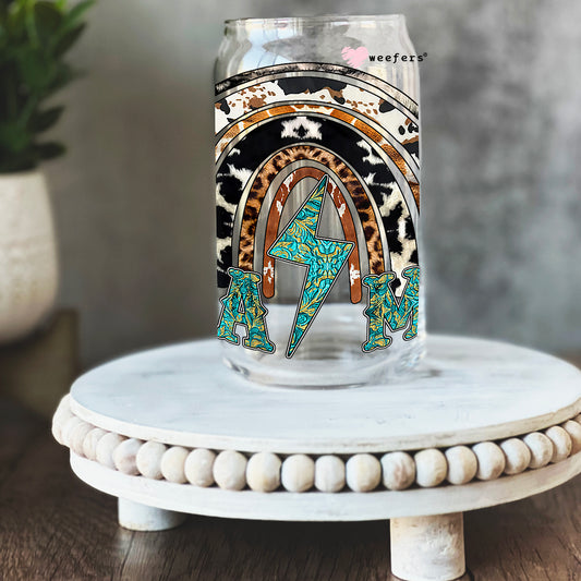 Mama Rainbow Lightening Cheetah 16oz Libbey Glass Can UV DTF or Sublimation Wrap - Decal
