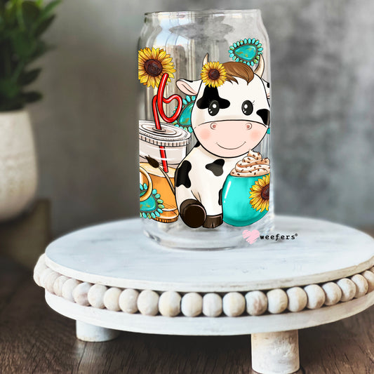 Western Sunflower Cow Libbey Glass Can UV DTF or Sublimation Wrap - Decal