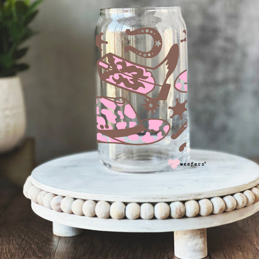 Pink and Brown Cowgirl Boots Libbey Glass Can UV DTF or Sublimation Wrap - Decal