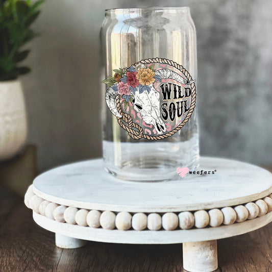 Wild Soul Cow Skull Retro 16oz Libbey Glass Can UV DTF or Sublimation Decal Transfer