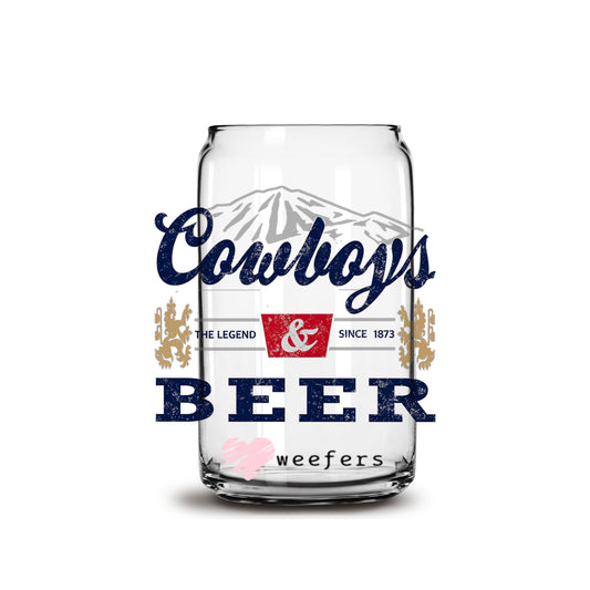 Cowboys and Beer Libbey Glass Can UV DTF or Sublimation Wrap - Decal