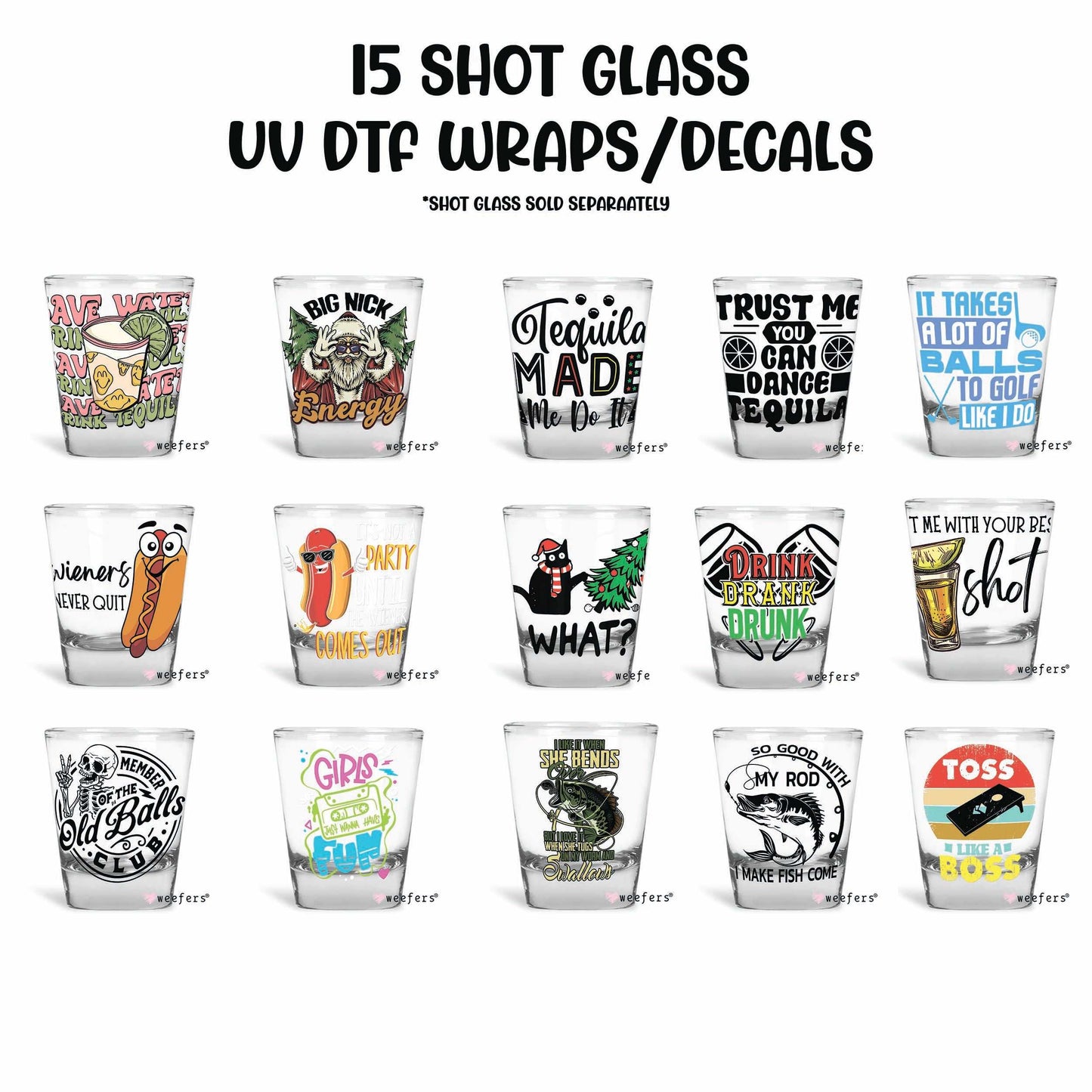 (15) Shot Glass UV DTF Wraps - Decals Bundle - Vol. 10
