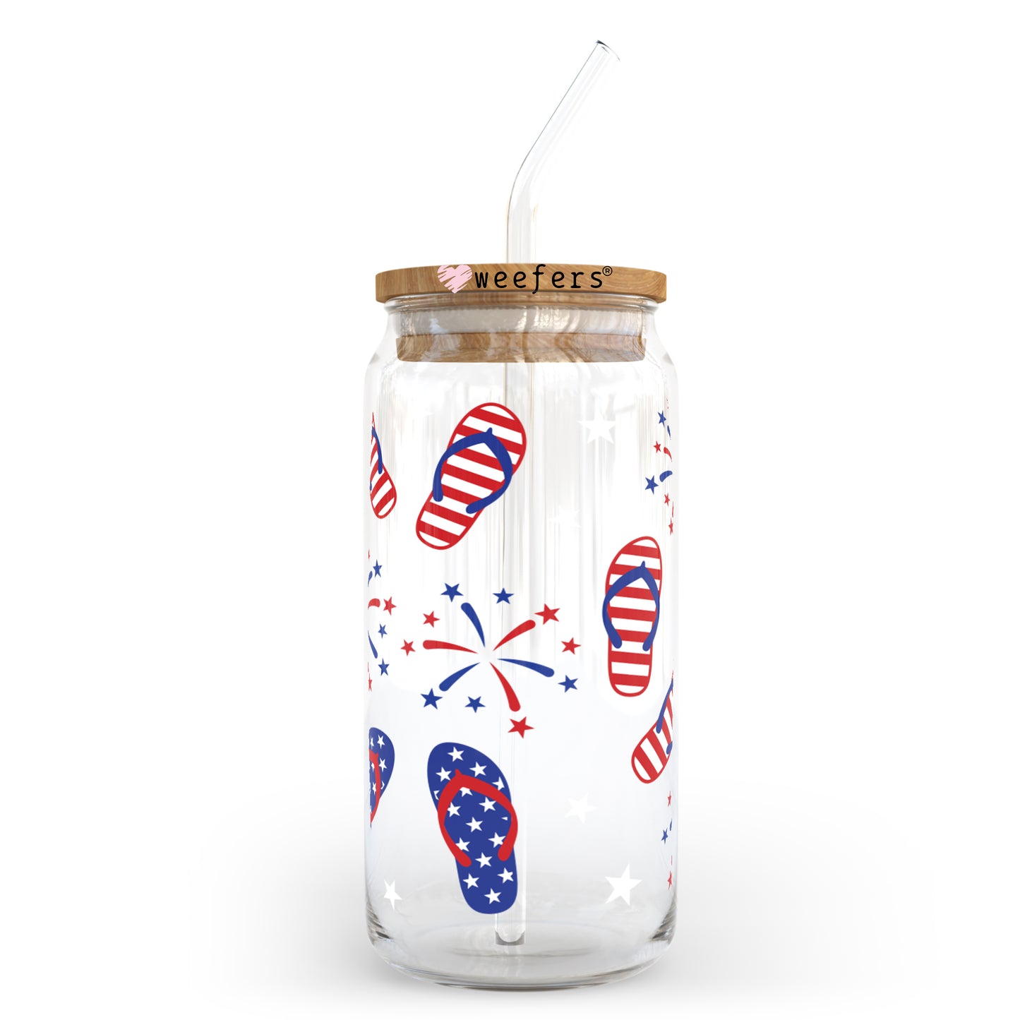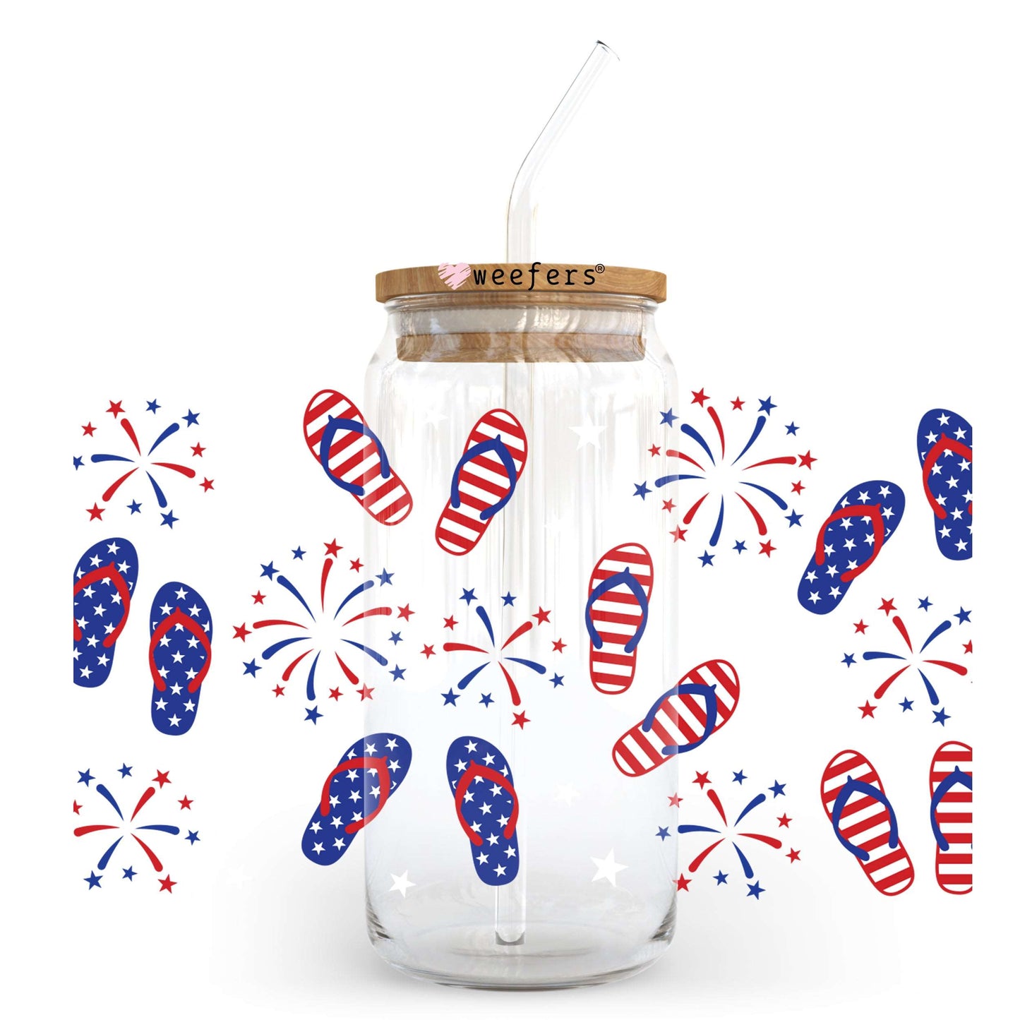 4th of July Flip Flops and Sparklers 20oz Libbey Glass Can UV DTF or Sublimation Wrap - Decal