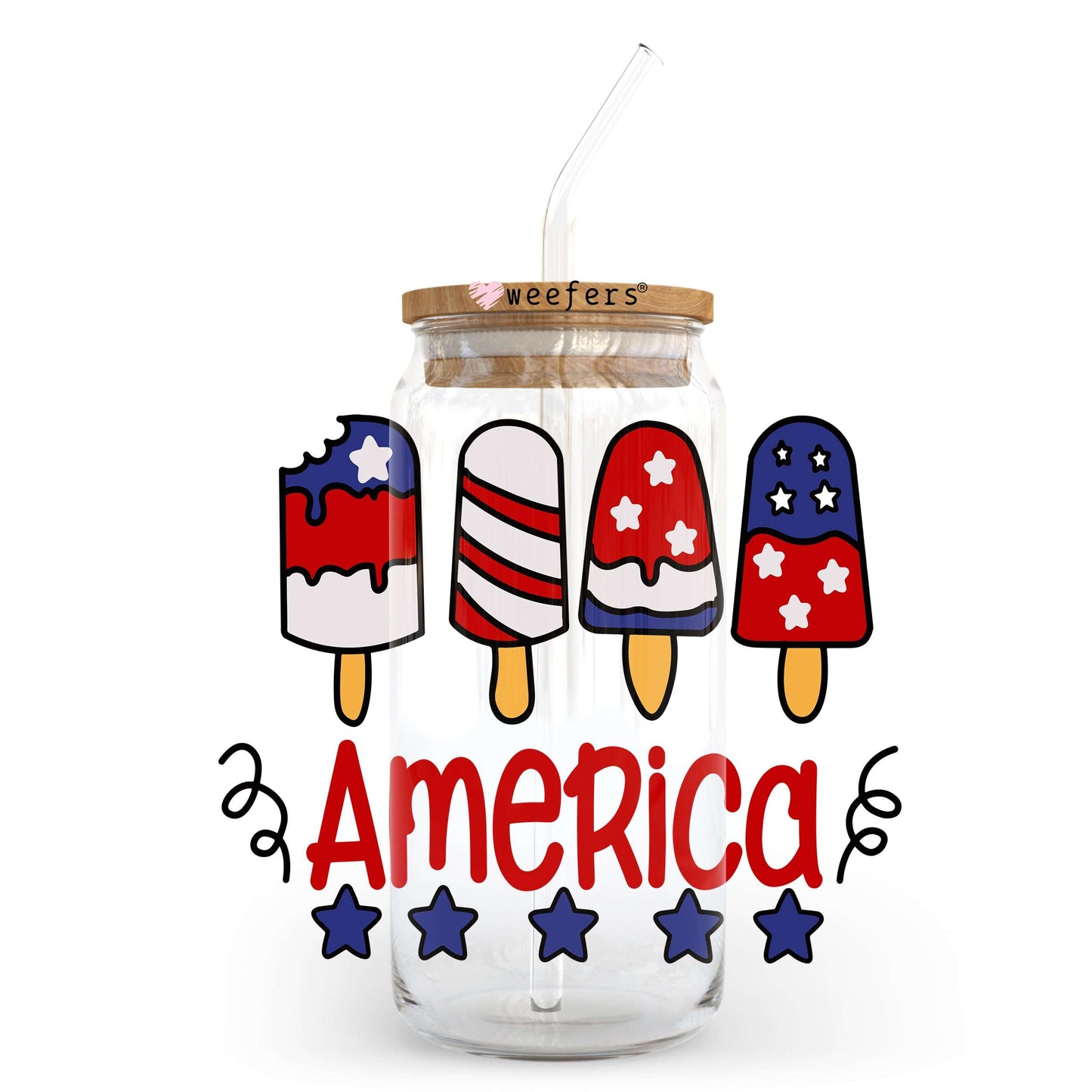 4th of July Popsicles America 20oz Libbey Glass Can, 34oz Hip Sip, 40oz Tumbler UV DTF or Sublimation Decal Transfer