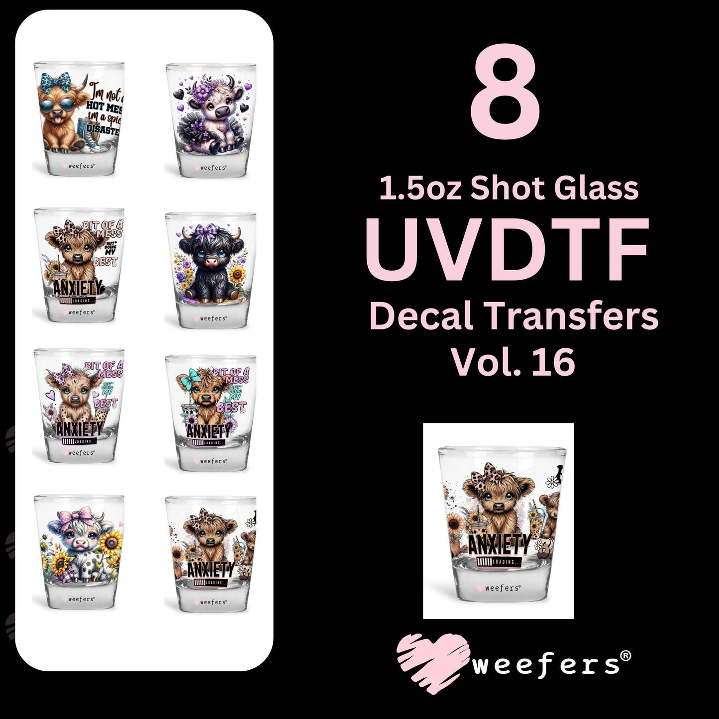 (8) Cute Highlander Cow 1.5oz Shot Glass UV DTF Wraps - Decals Bundle - Vol. 16