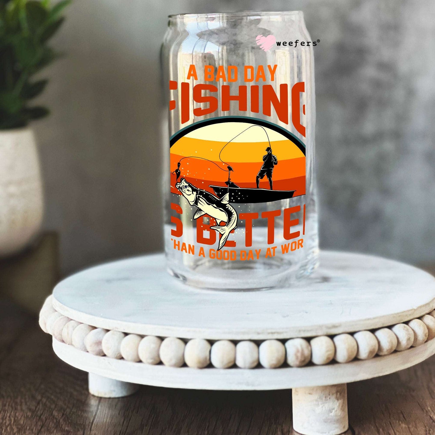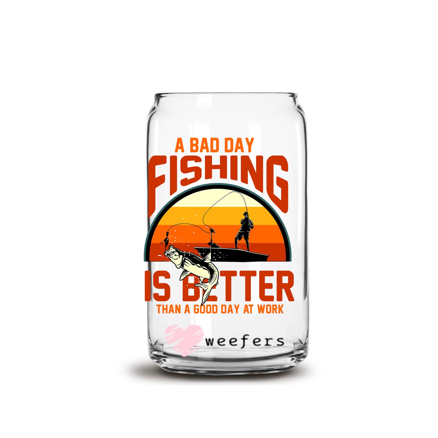 A Bad Day Fishing is Better than a Good Day at Work 16oz Libbey Glass Can UV DTF or Sublimation Cup Wrap - Decal Description