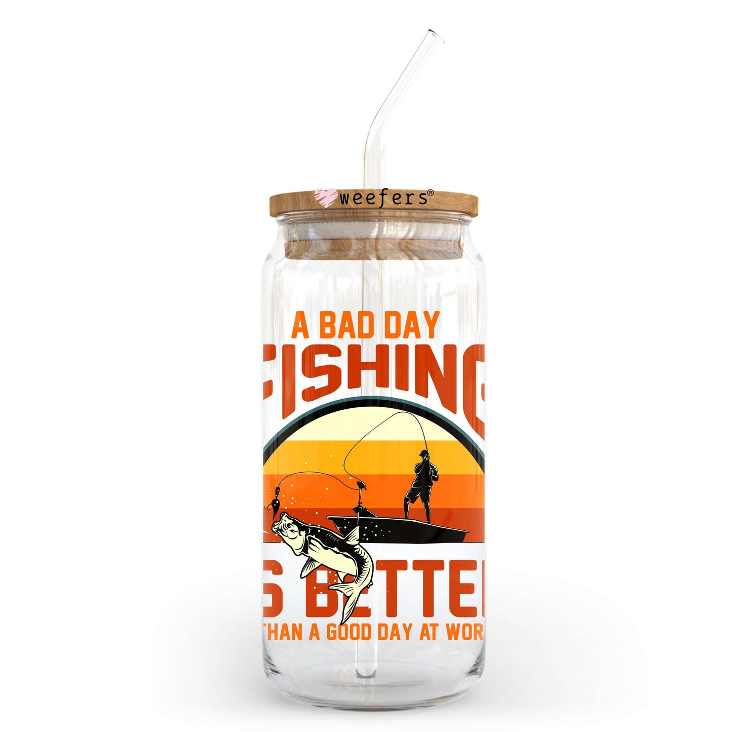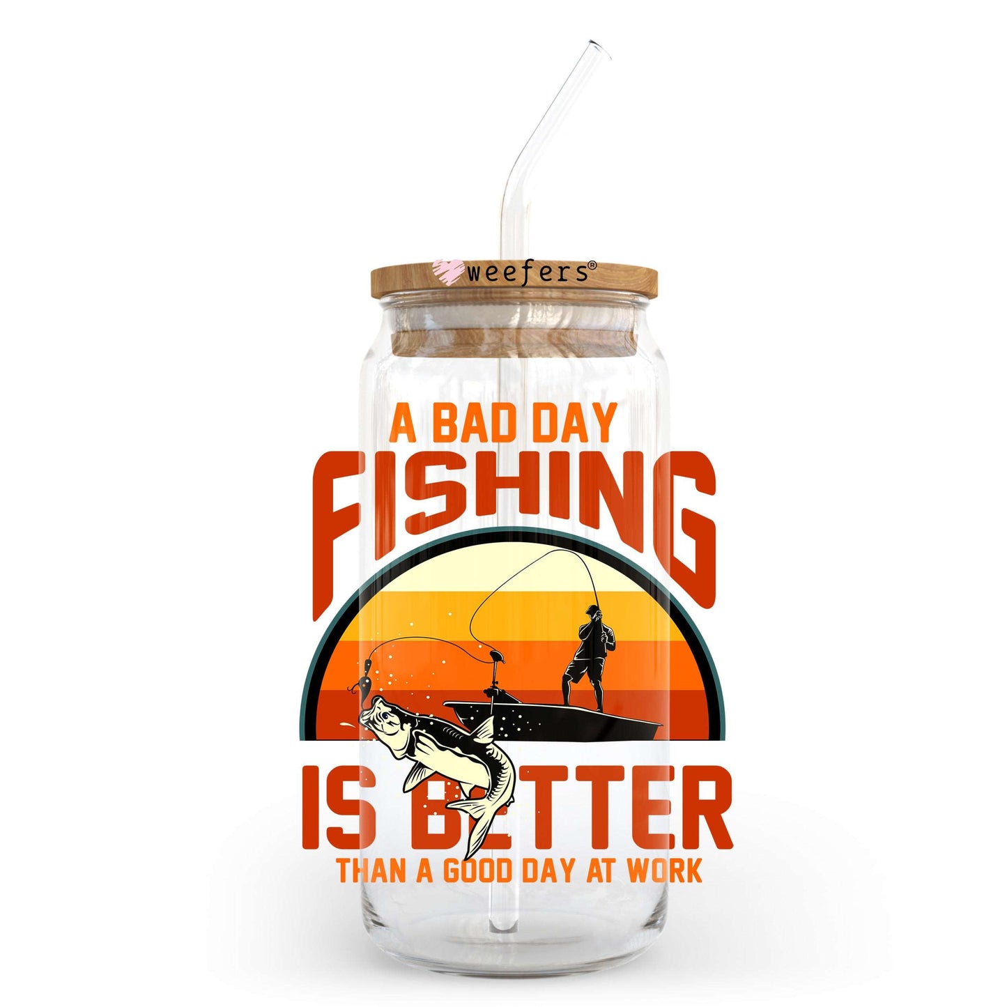 A bad Day Fishing is better than a Good Day at Work 20oz Libbey Glass Can UV DTF or Sublimation Wrap - Decal Transfer Description
