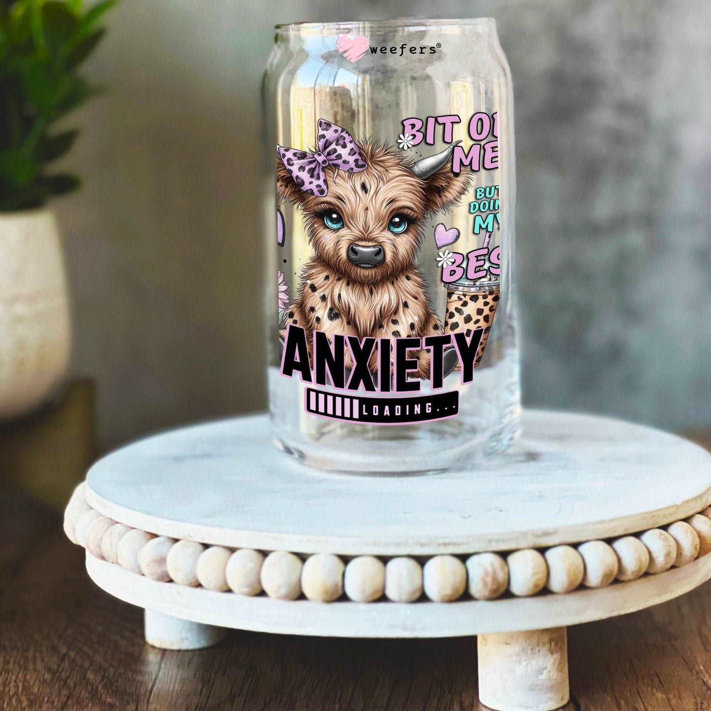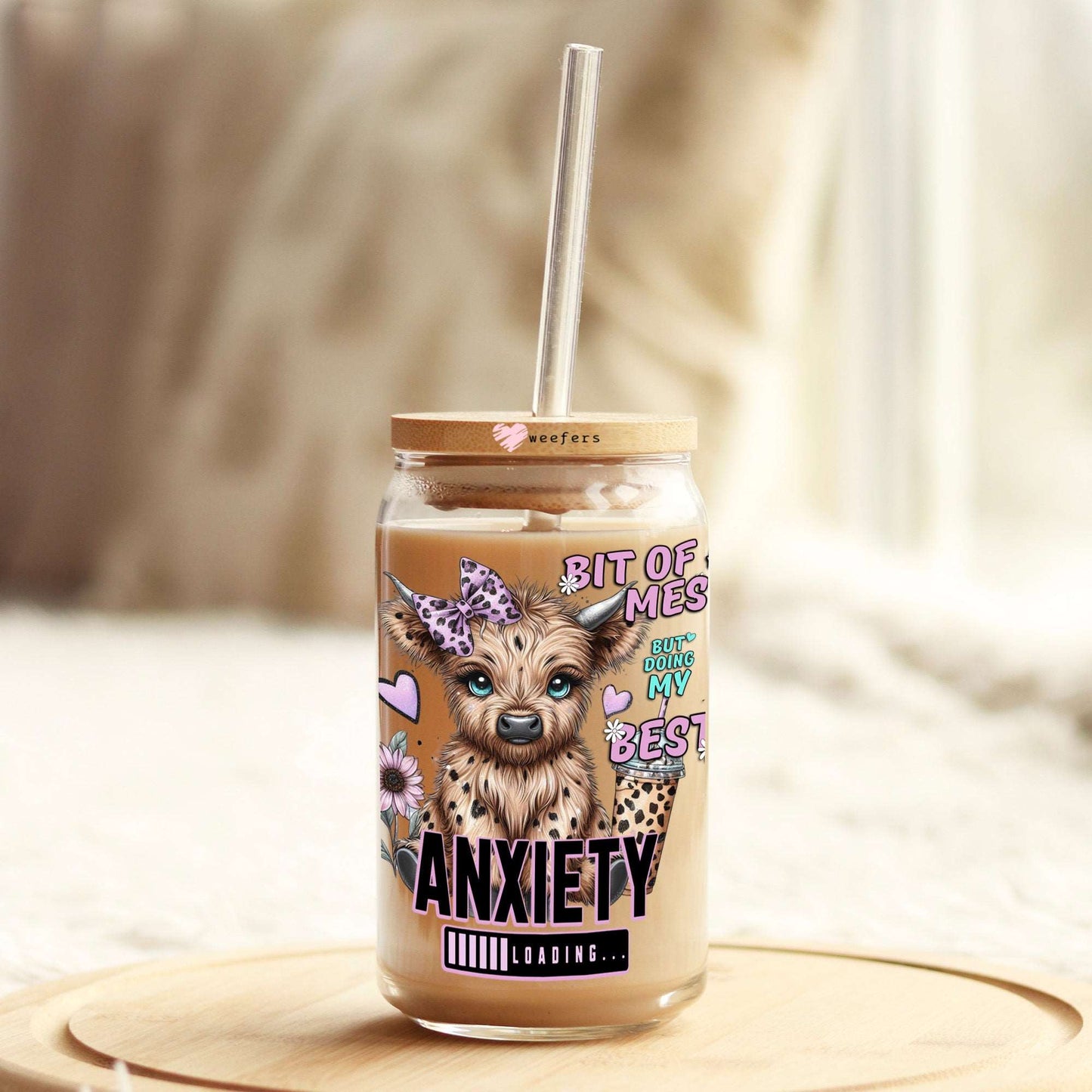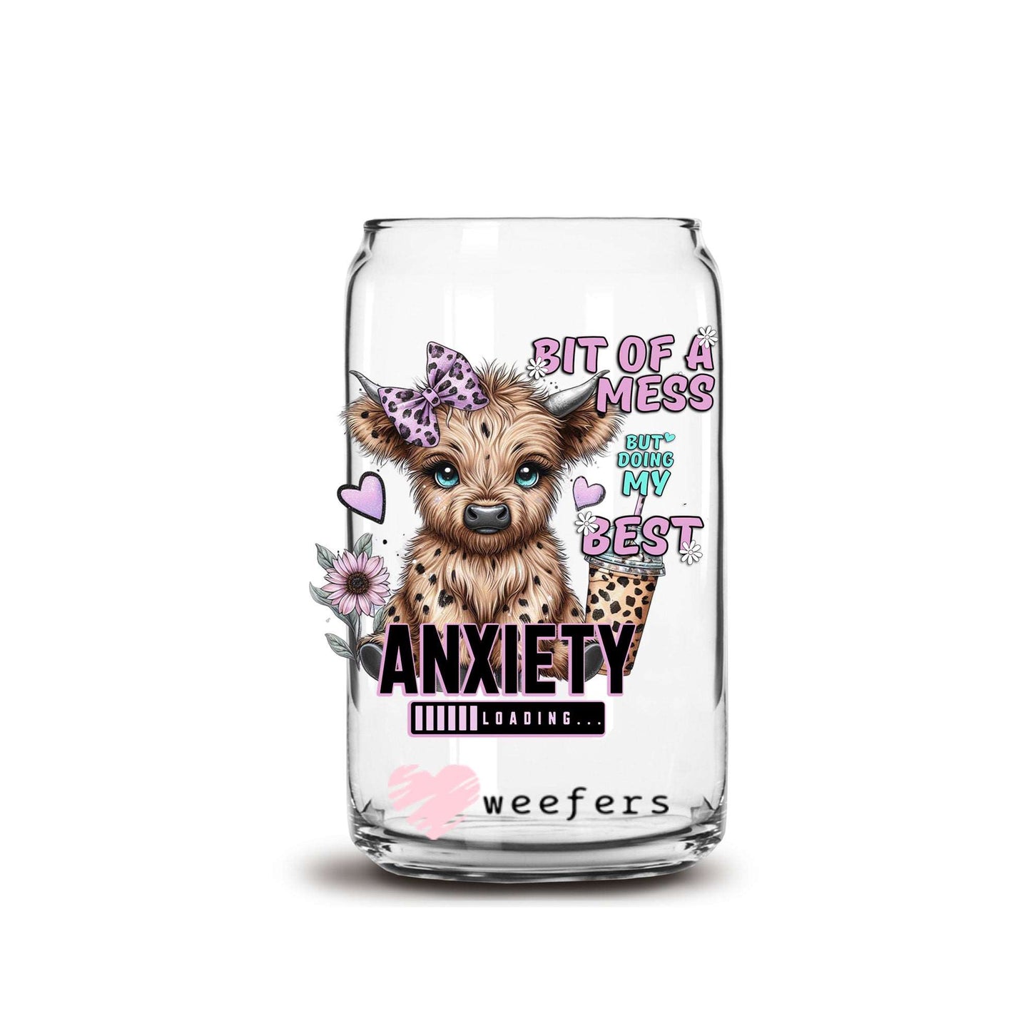 A Bit of a Mess But Doing My Best Purple Highland Cow 16oz Libbey Glass Can UV DTF or Sublimation Decal Transfer