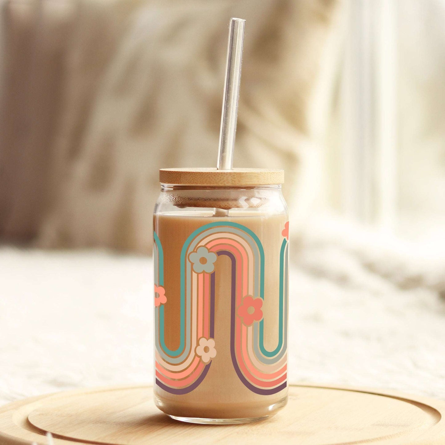 Abstract Green and Rust 16oz Libbey Glass Can UV DTF or Sublimation Cup Wrap - Decal Transfer Description