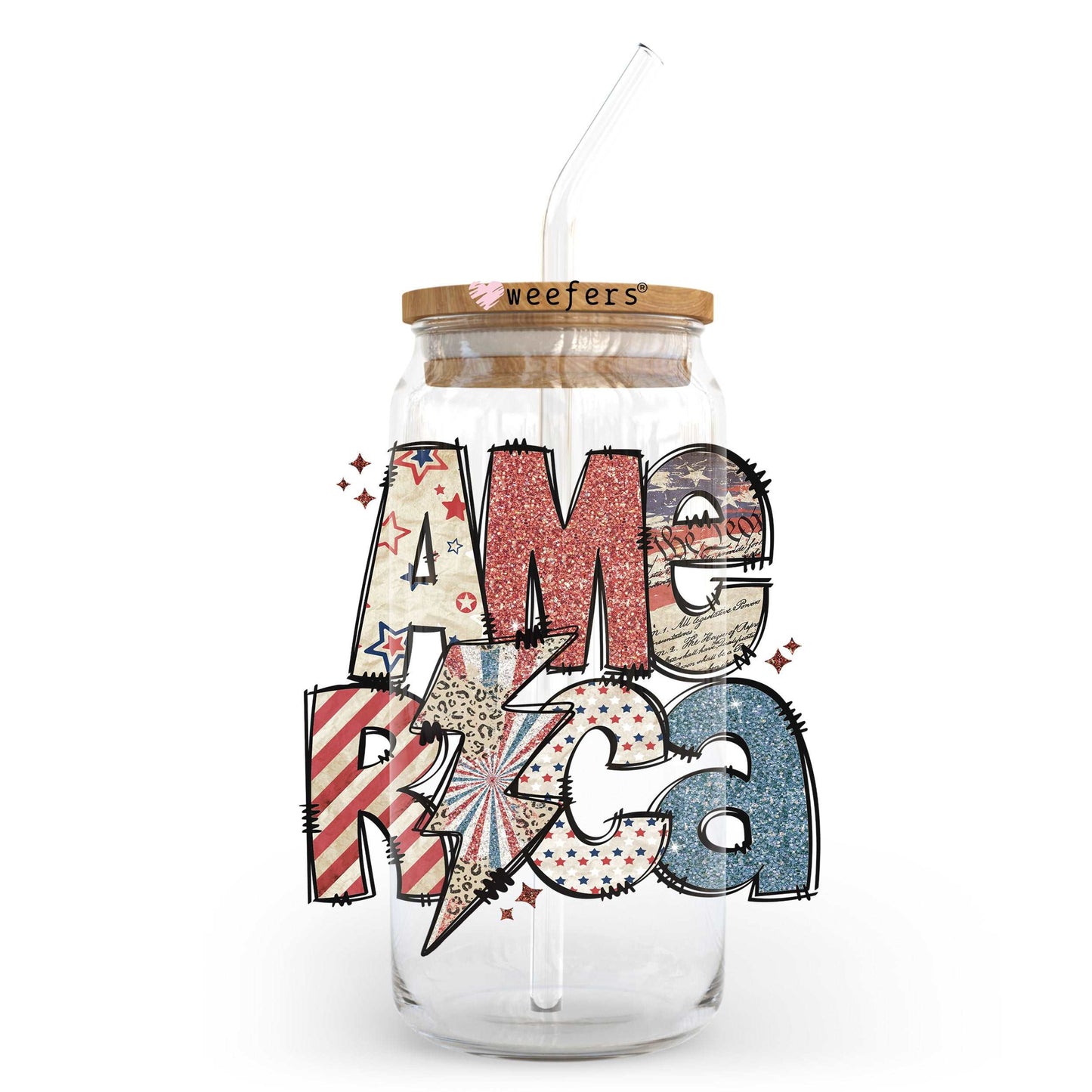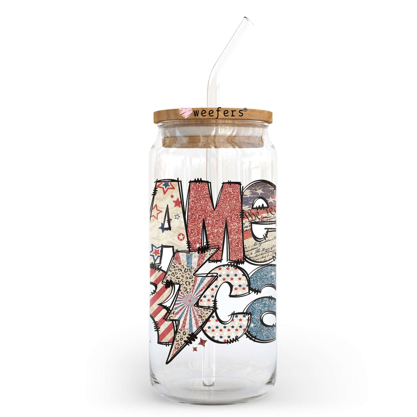 America Lightening Bolt 4th of July 20oz Libbey Glass Can UV DTF or Sublimation Decal