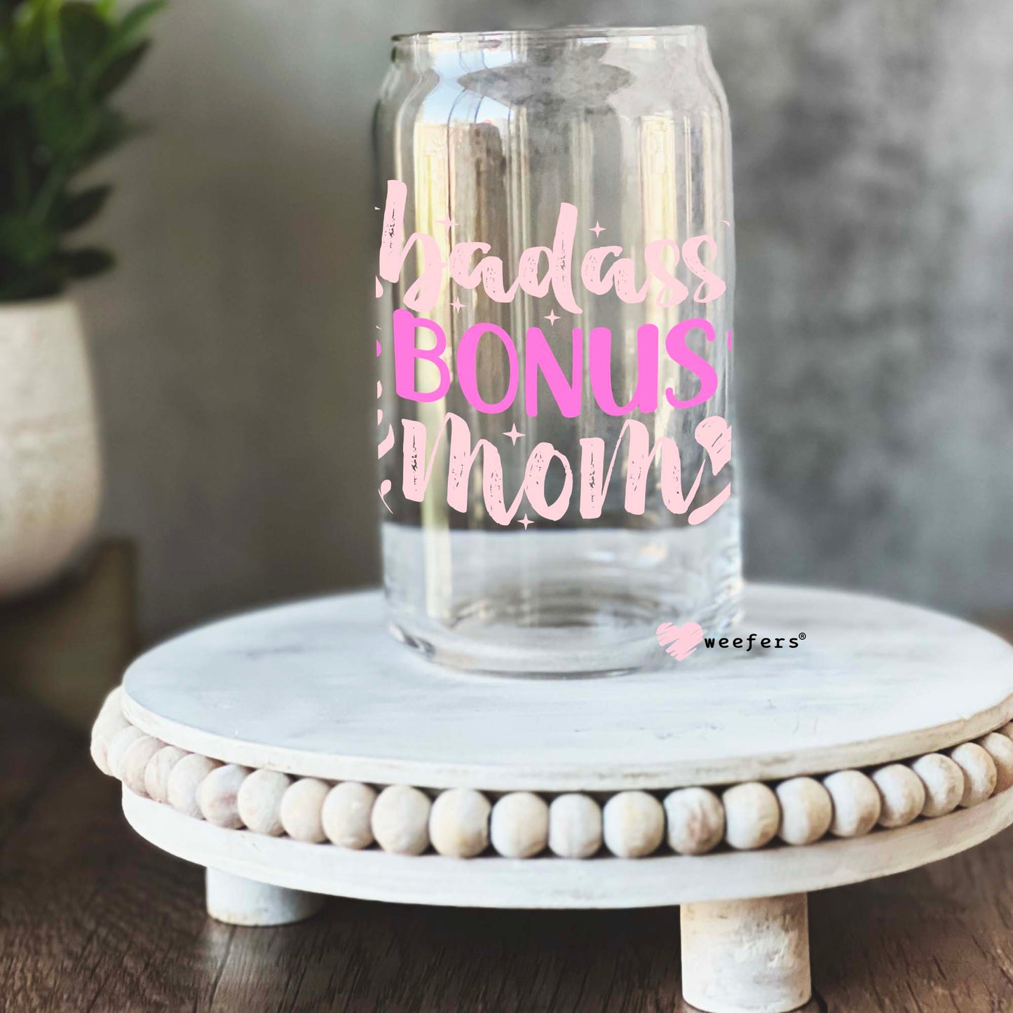 Badass Bonus Mom Libbey Glass Can UV DTF or Sublimation Wrap - Decal