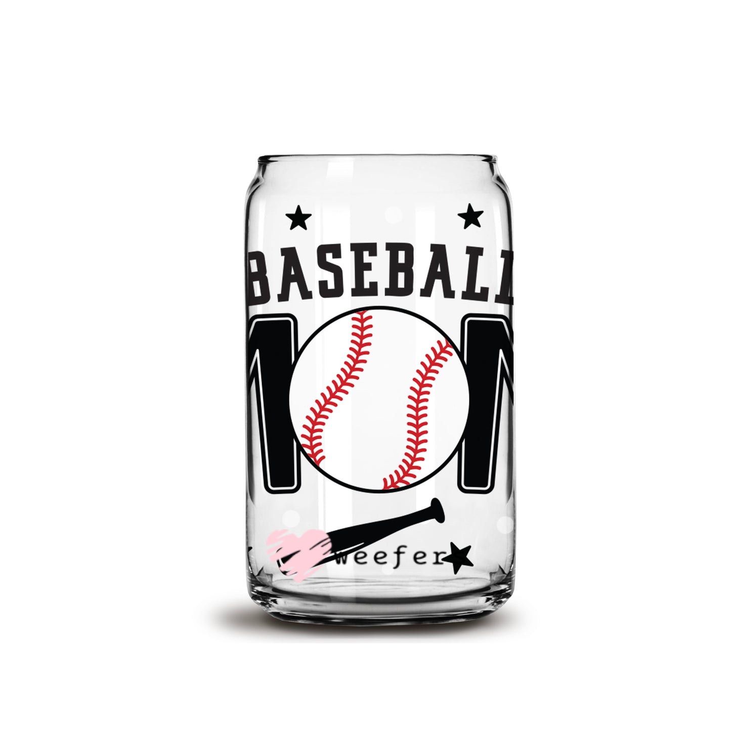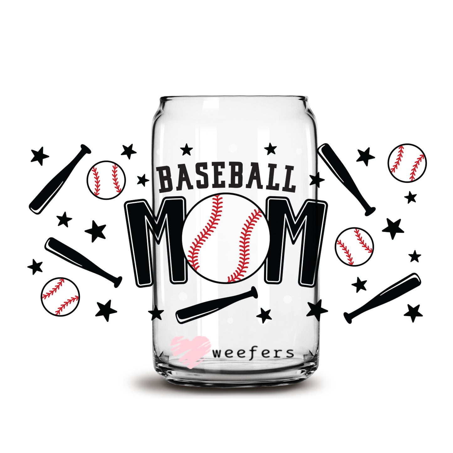 Baseball Mom Bats and Balls 16oz Libbey Glass Can UV DTF or Sublimation Wrap - Decal Description