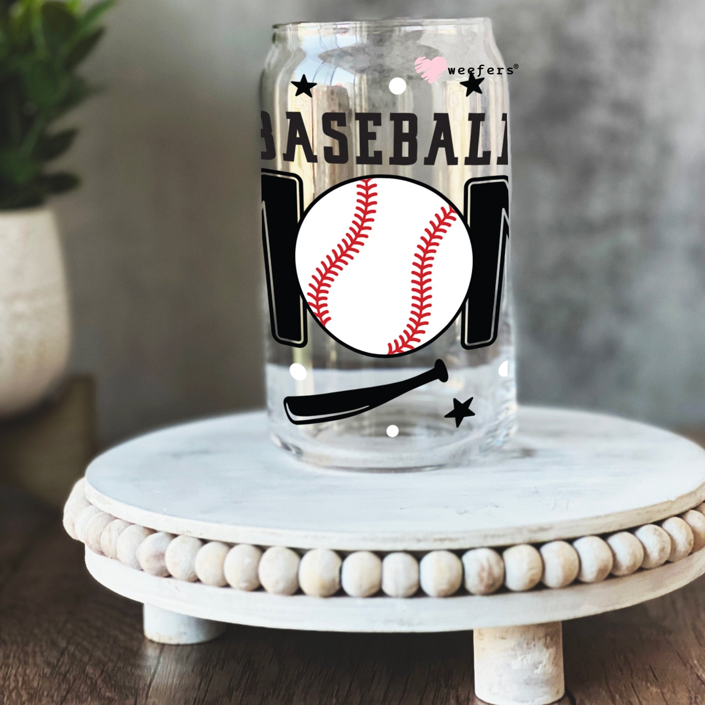 Baseball Mom Bats and Balls 16oz Libbey Glass Can UV DTF or Sublimation Wrap - Decal
