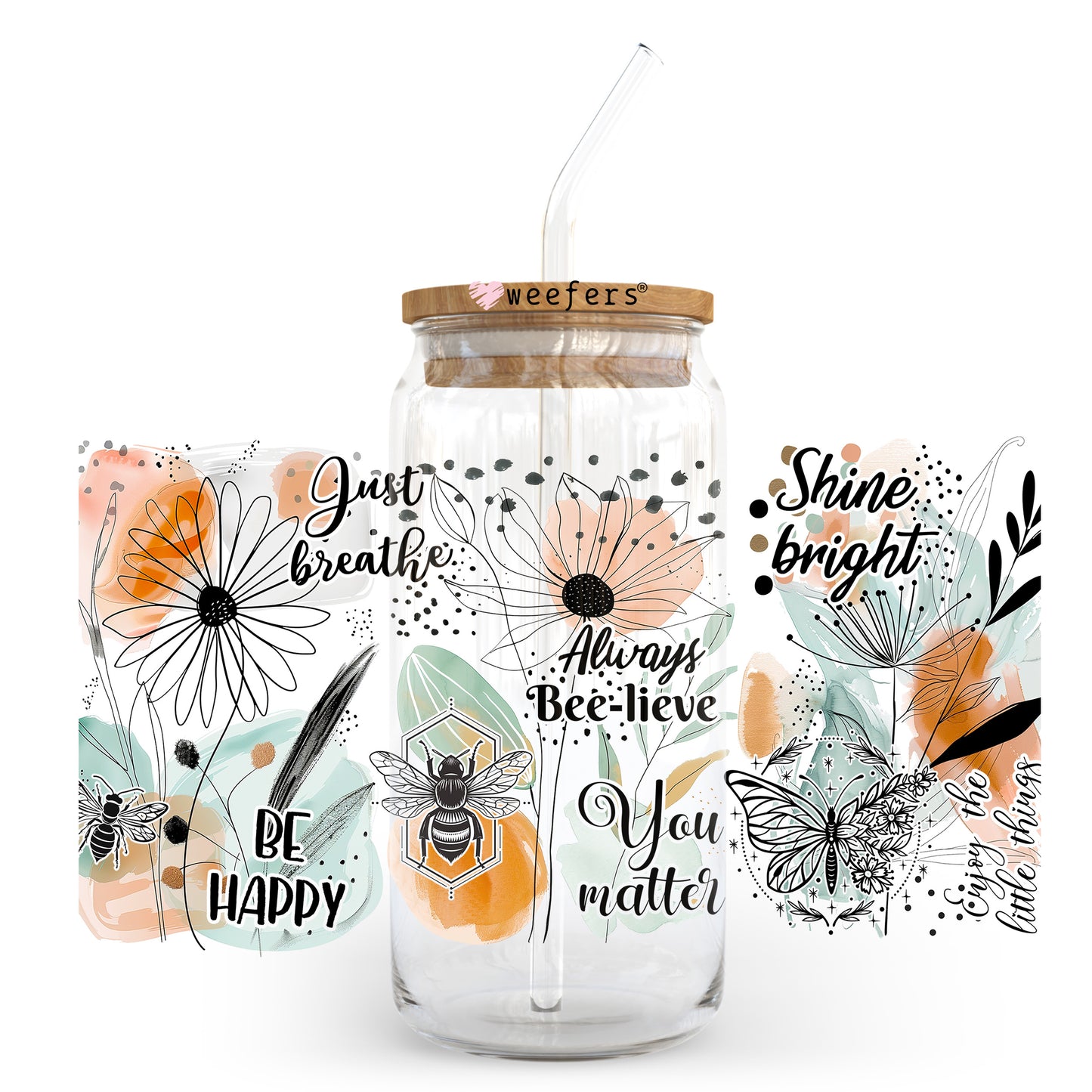 Be Happy Just Breathe Shine Bright 20oz Libbey Glass Can UV DTF or Sublimation Wrap Transfer