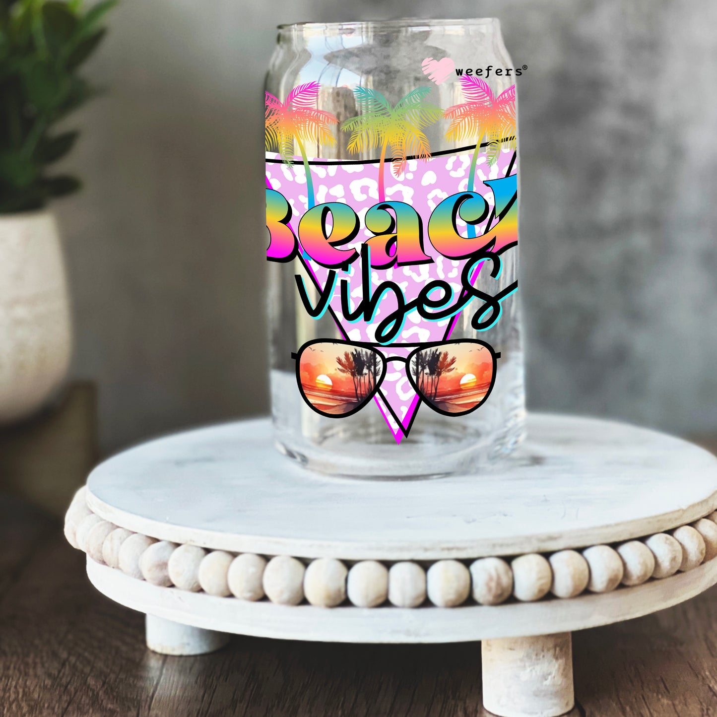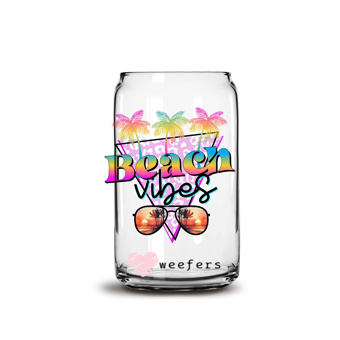 Beach Vibes 16oz Libbey Glass Can UV DTF or Sublimation Wrap - Decal