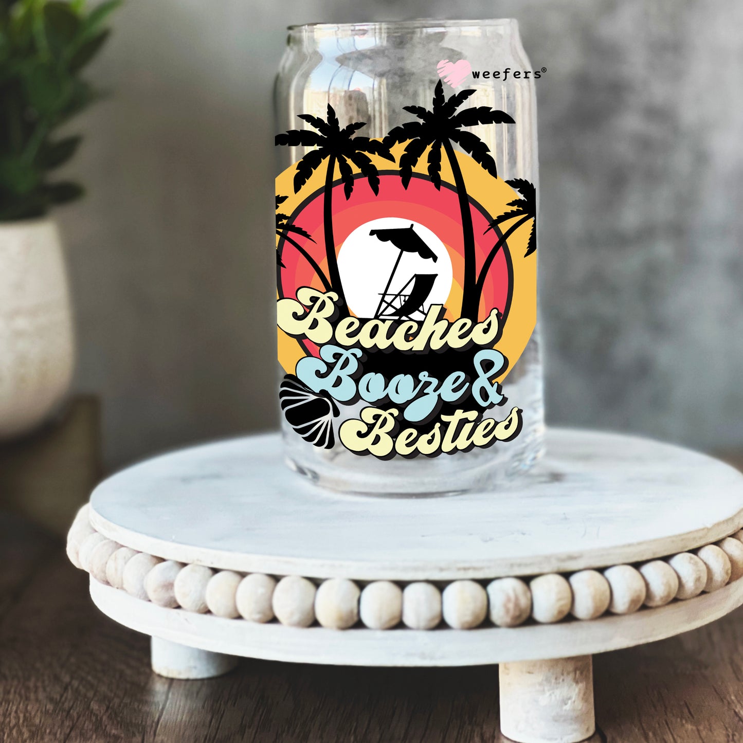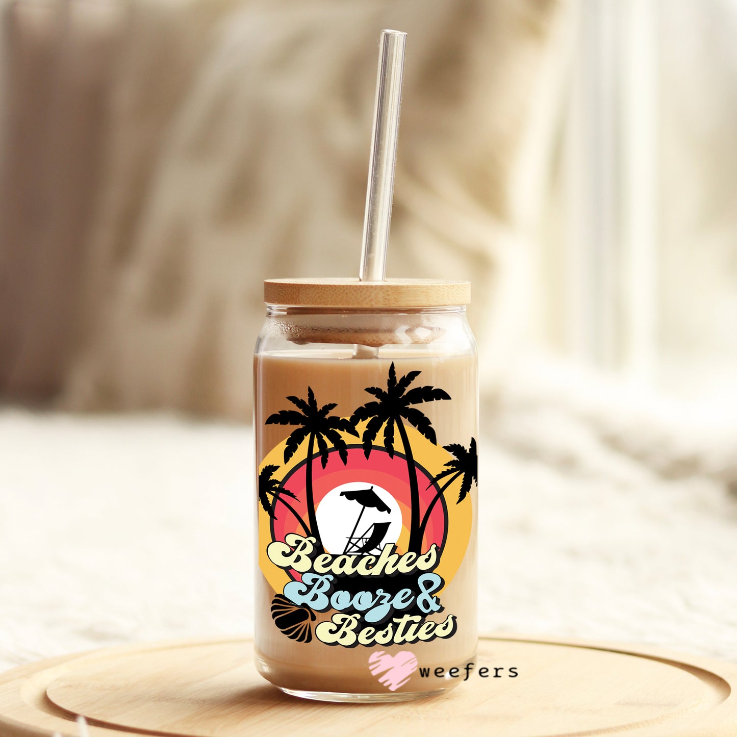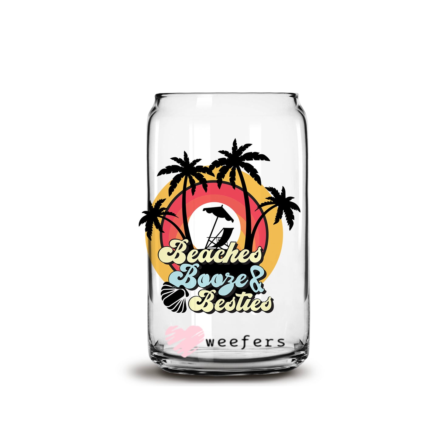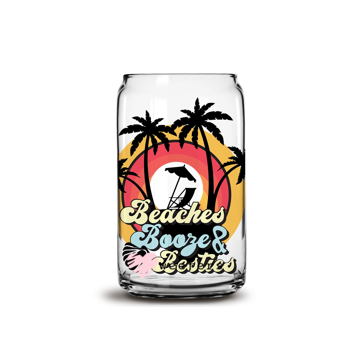 Beaches Booze and Besties Palms 16oz Libbey Glass Can UV DTF or Sublimation Wrap - Decal Description