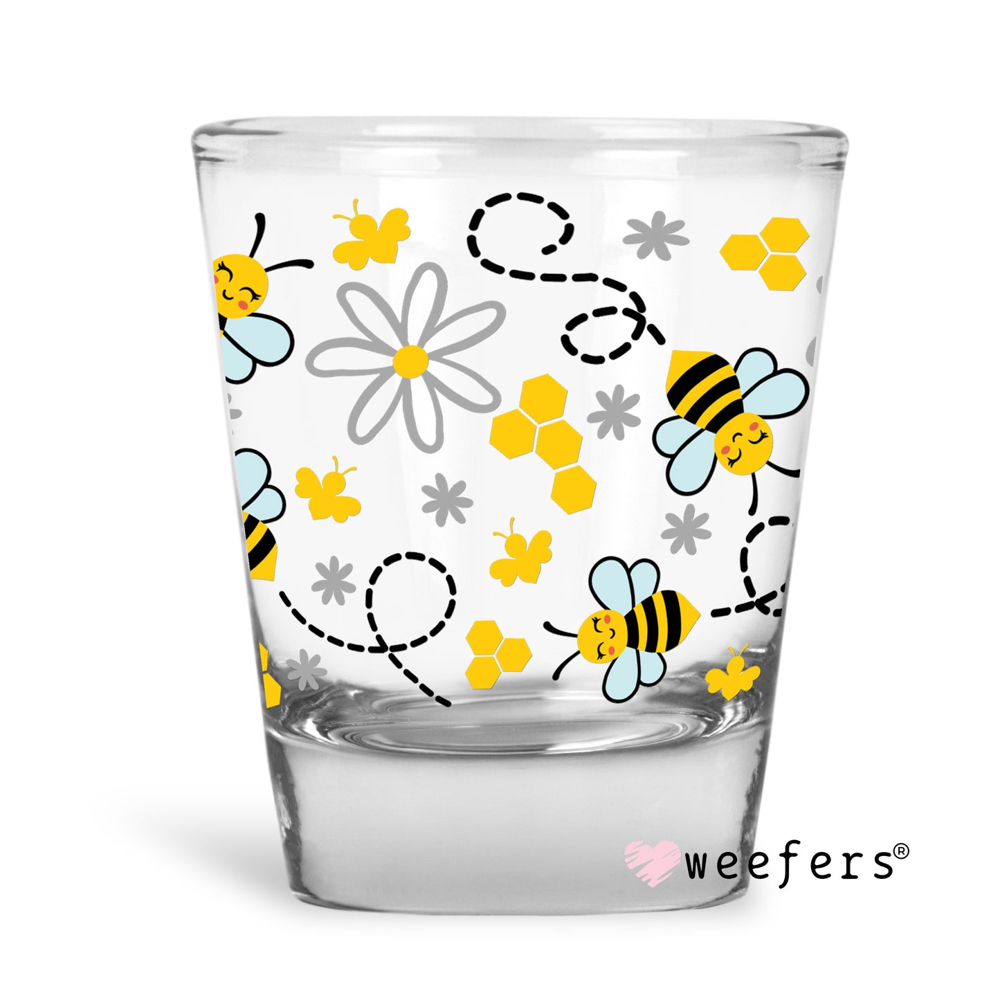 Bees, hearts and flowers oh my Shot Glass Short UV DTF or Sublimation Wrap - Decal