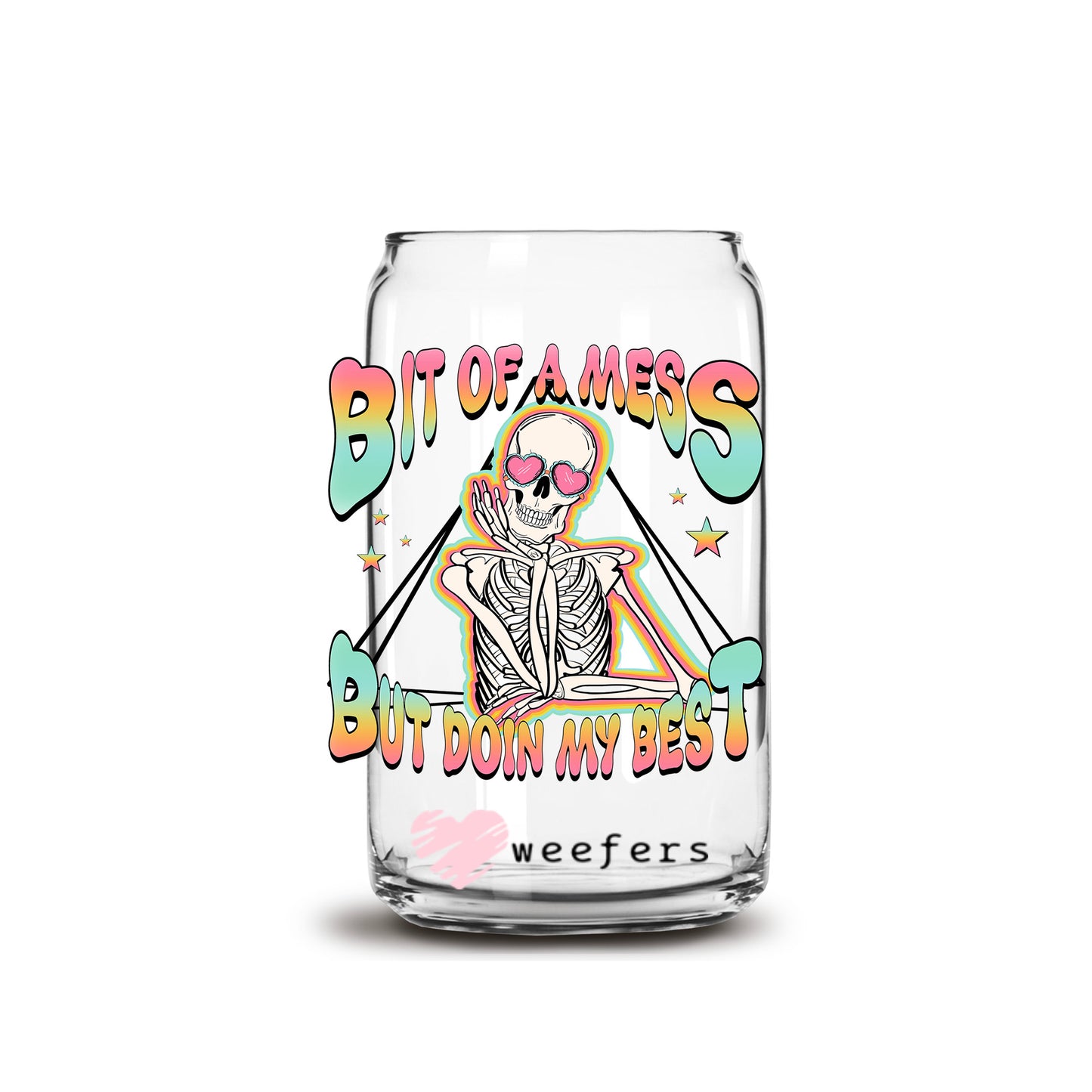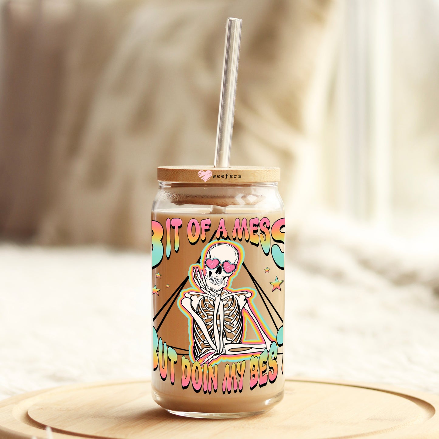 Bit of a Mess But Doing My Best Skeleton 16oz Libbey Glass Can UV DTF or Sublimation Wrap - Transfer
