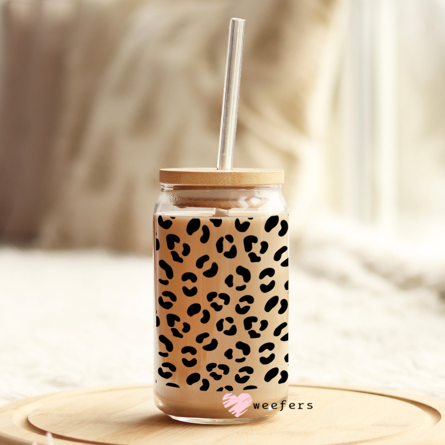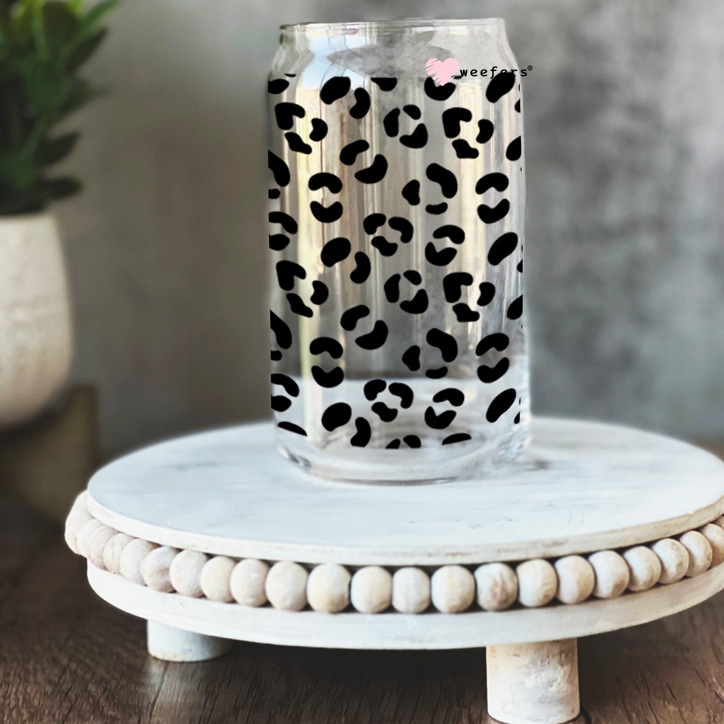 Black Cheetah Print 16oz Libbey Glass Can UV DTF or Sublimation Wrap - Decal Description