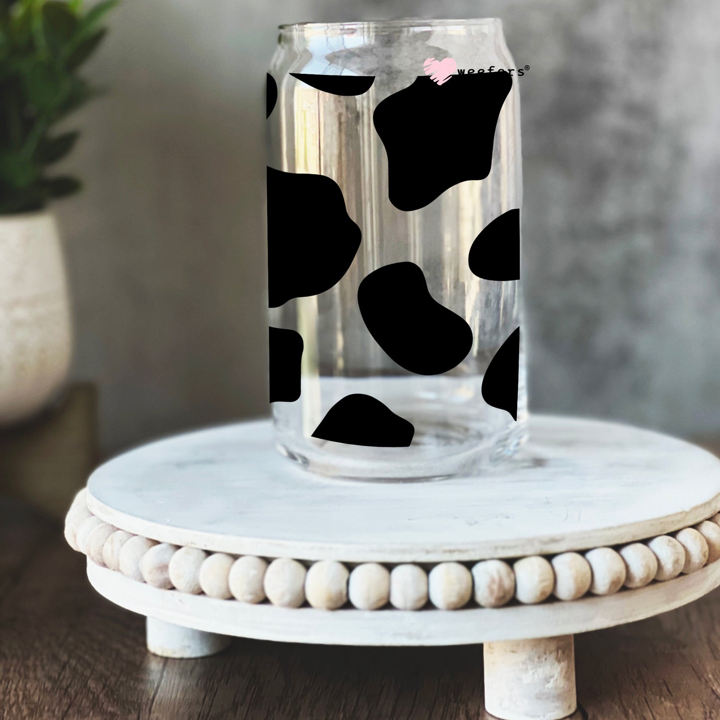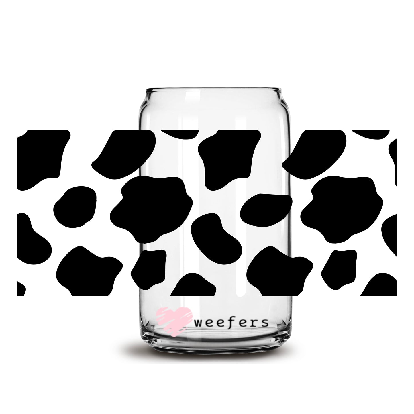 Black Cow Print 16oz Libbey Glass Can UV DTF or Sublimation Wrap - Decal Description
