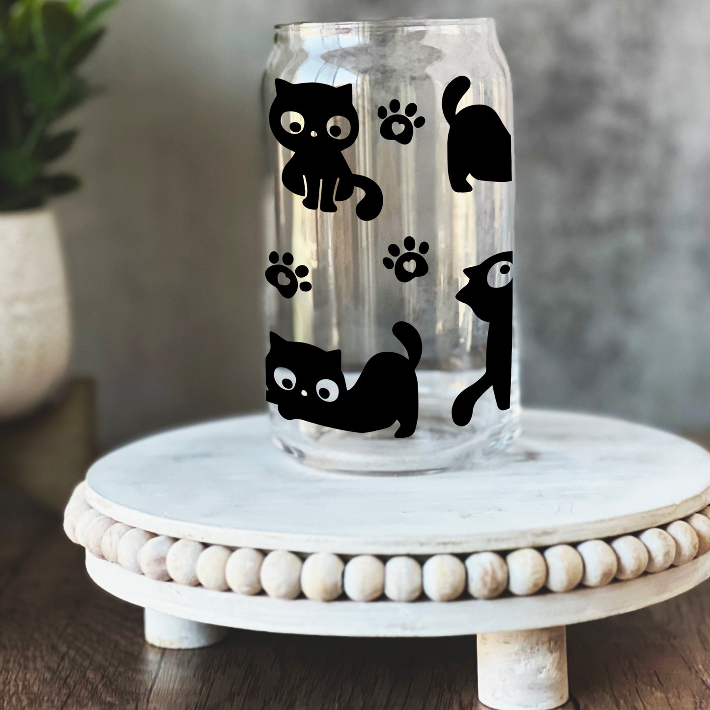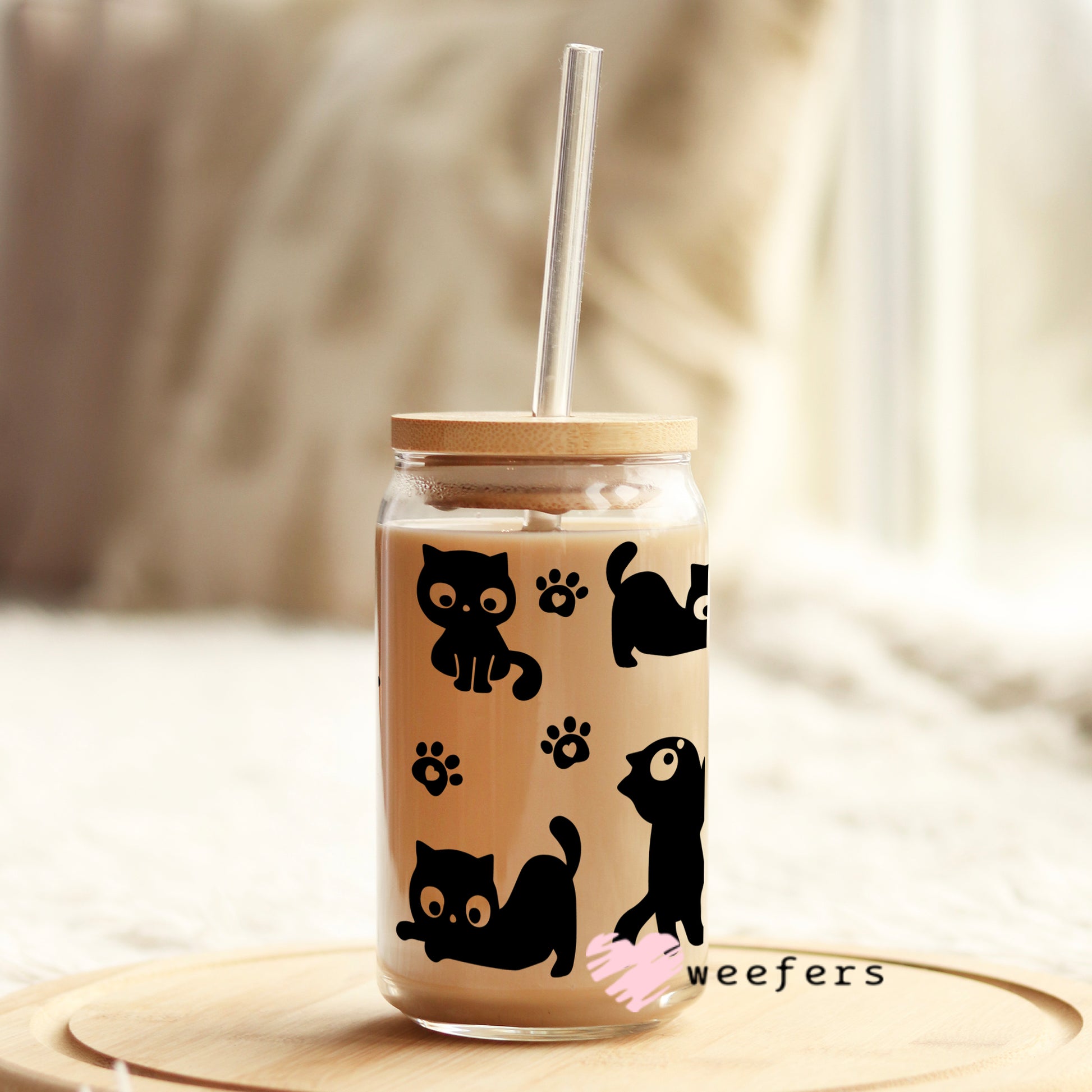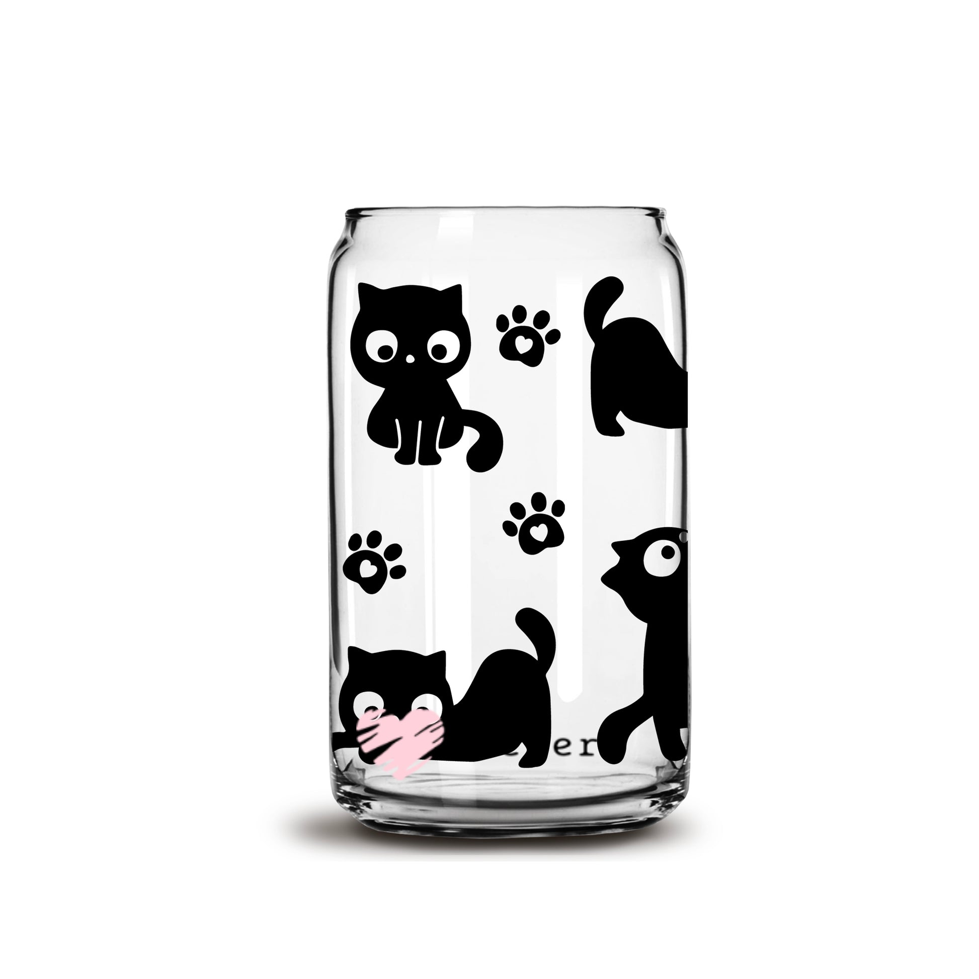 Black Playful Kitty Cats Libbey Glass Can UV DTF or Sublimation Wrap Description