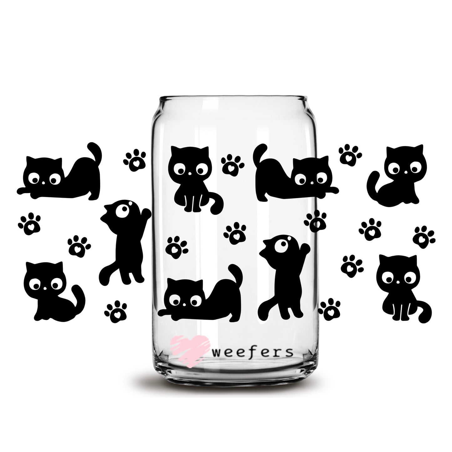 Black Playful Kitty Cats Libbey Glass Can Wrap UV DTF Sublimation Transfers