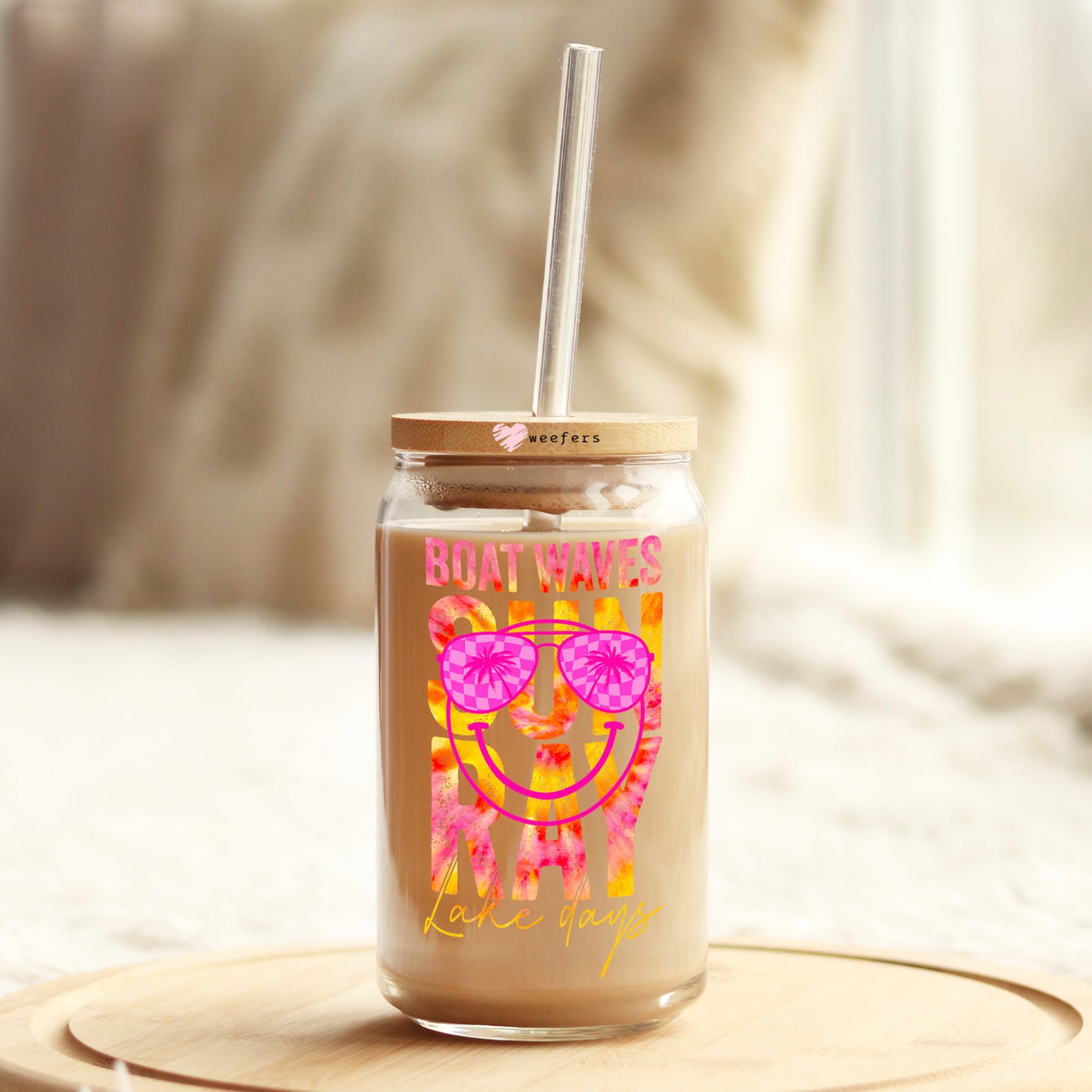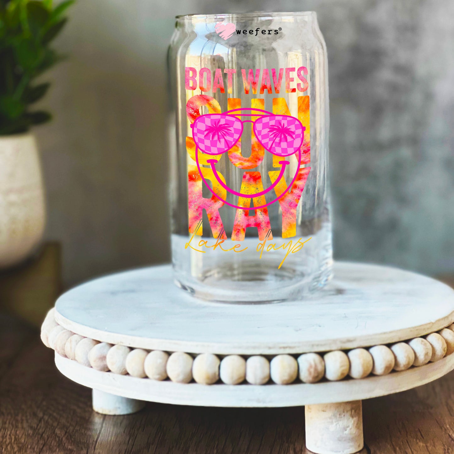 Boat Waves Sun Ray Lake Days 16oz Libbey Glass Can UV DTF or Sublimation Decal Transfer Description