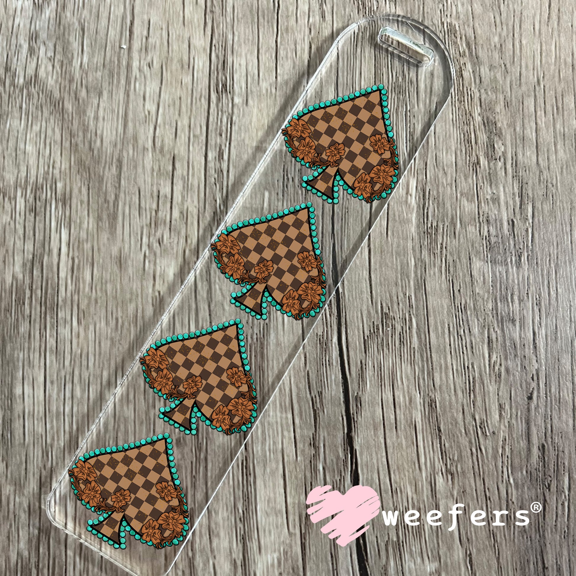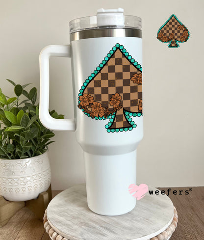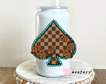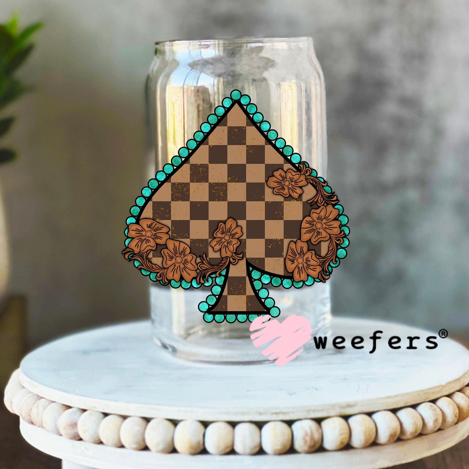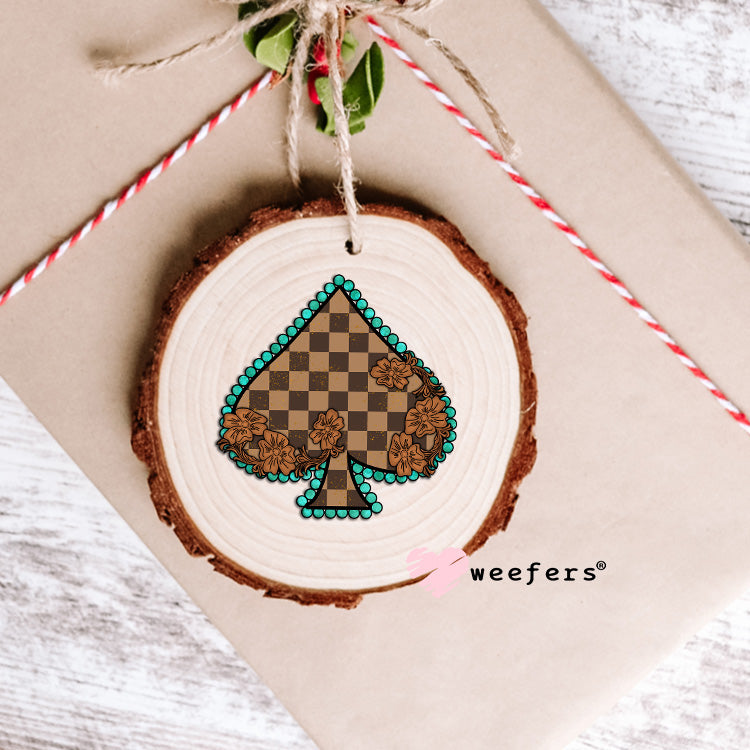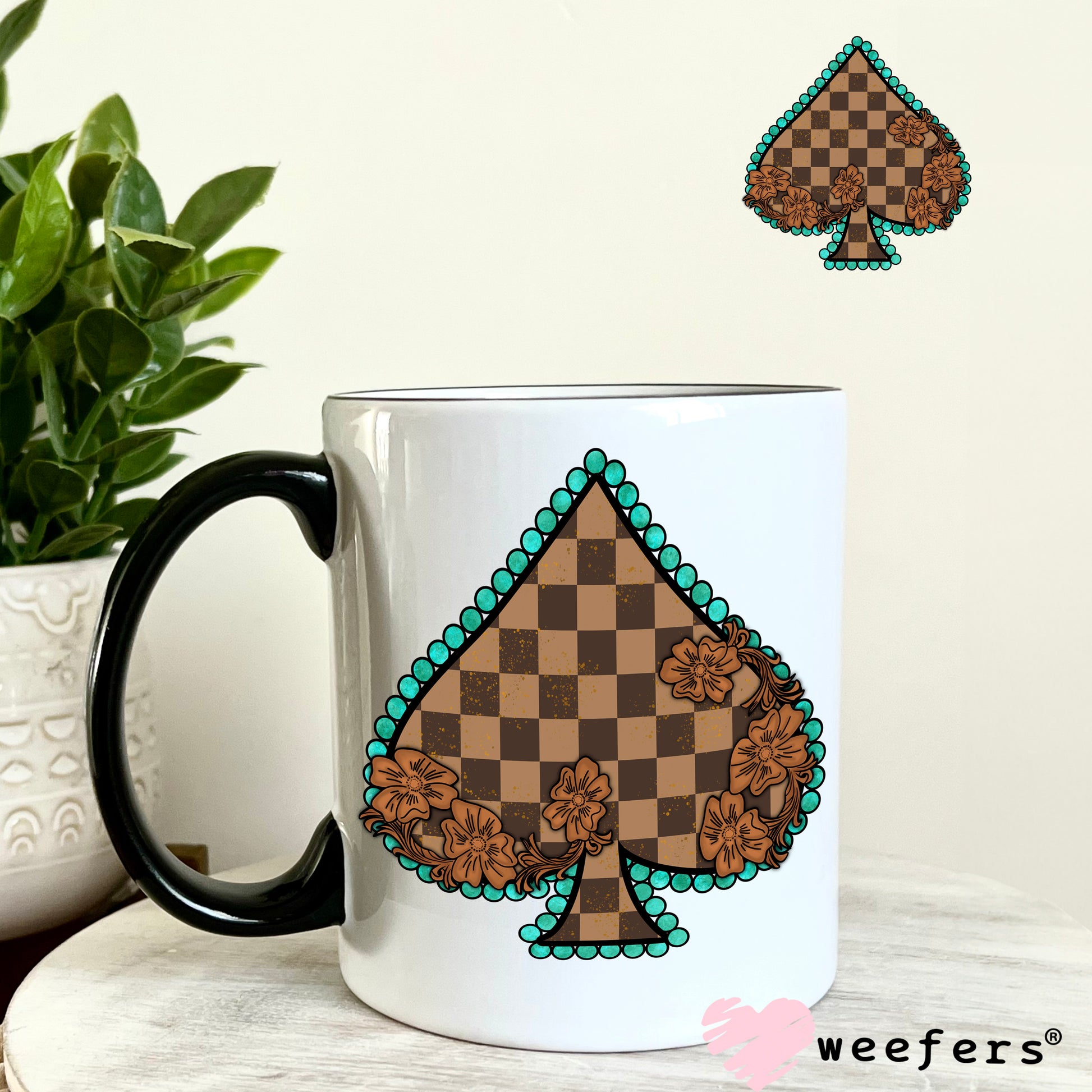 Brown and Turquoise Checkered Spade UV DTF Decal