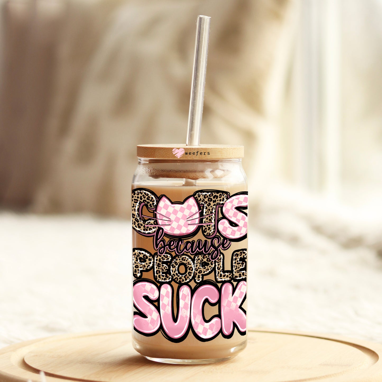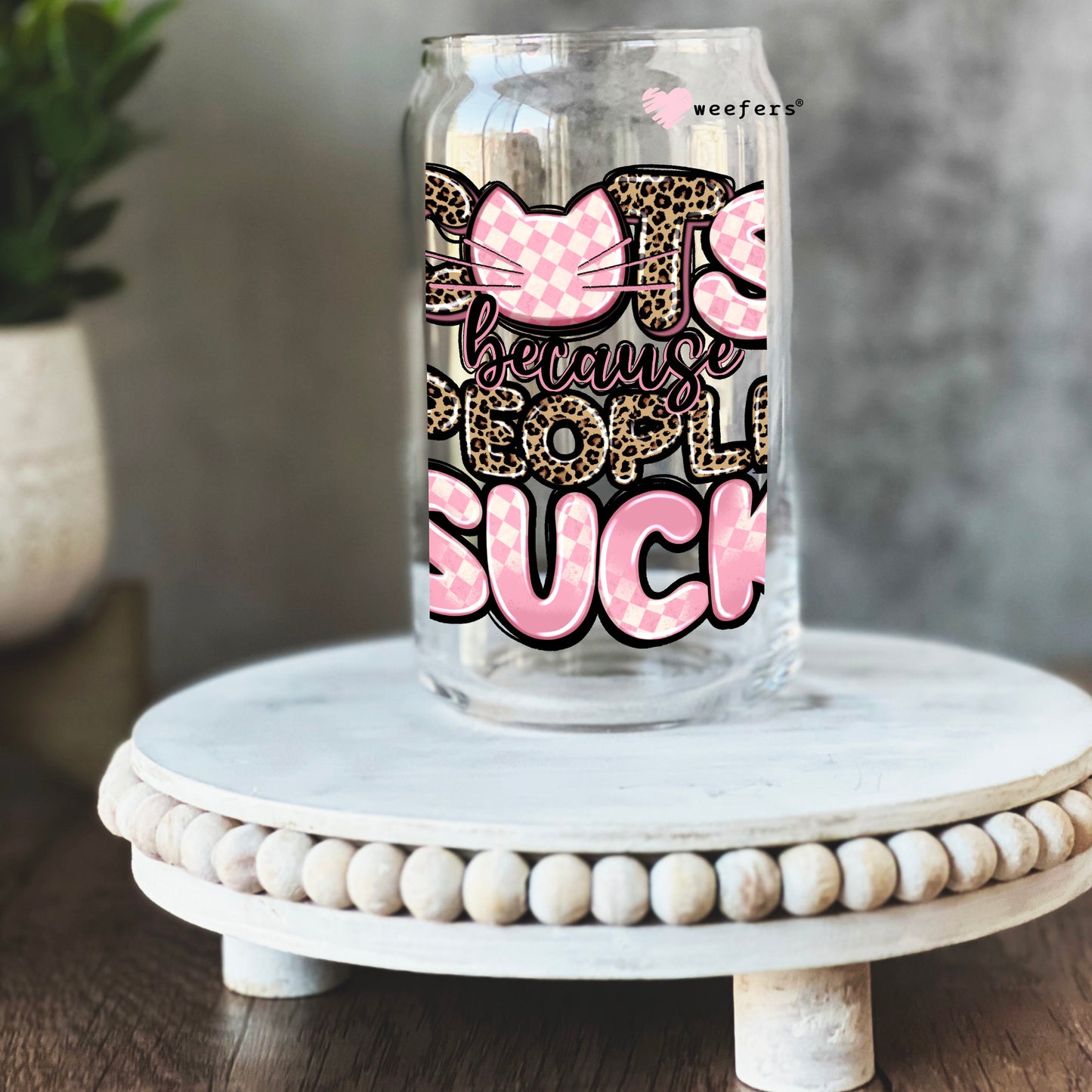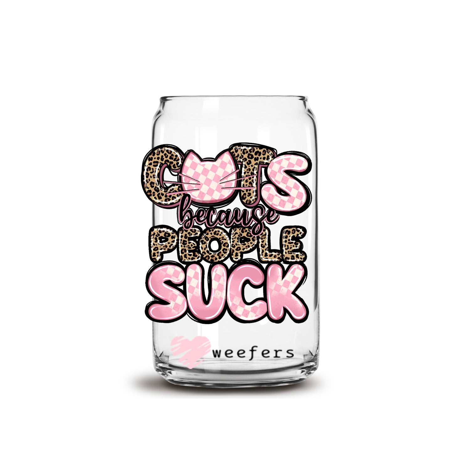 Cats Because People Suck Pink 16oz Libbey Glass Can UV DTF or Sublimation Cup Wrap - Decal Transfer