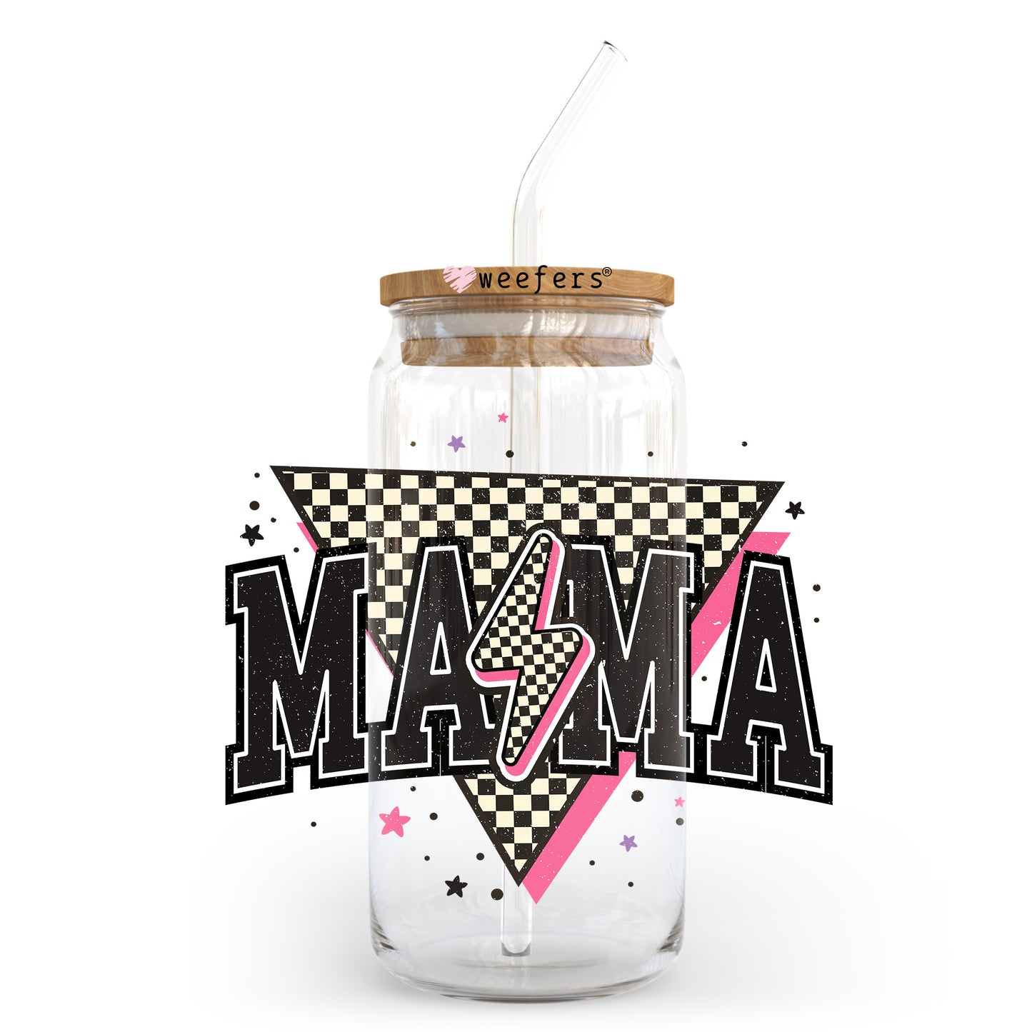 Checkered Mama in Black 20oz Libbey Glass Can, 34oz Hip Sip, 40oz Tumbler, 24oz Cold Cup UV DTF or Sublimation Decal Transfer