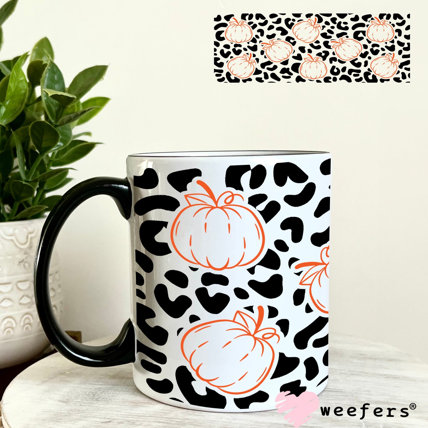Cheetah Print Orange Pumpkins UV DTF Cup Wrap Description