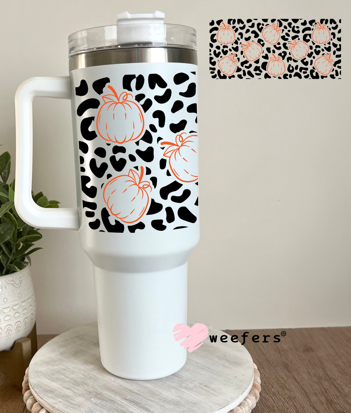 Cheetah Print Orange Pumpkins UV DTF Cup Wrap