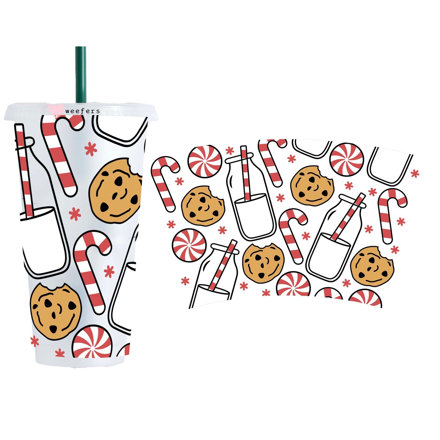 Christmas Cookies and Milk 24oz Cold Cup UV DTF Wrap - No Hole
