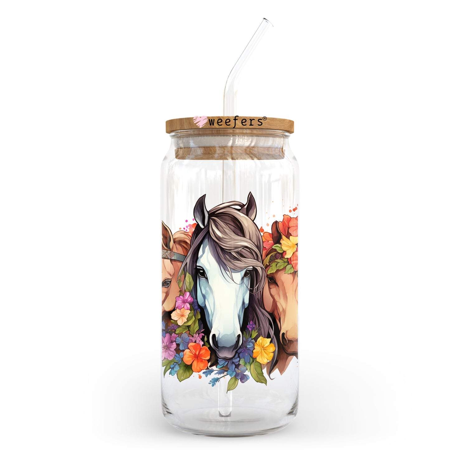 Colorful Horses 20oz Libbey Glass Can UV DTF or Sublimation Wrap Transfer