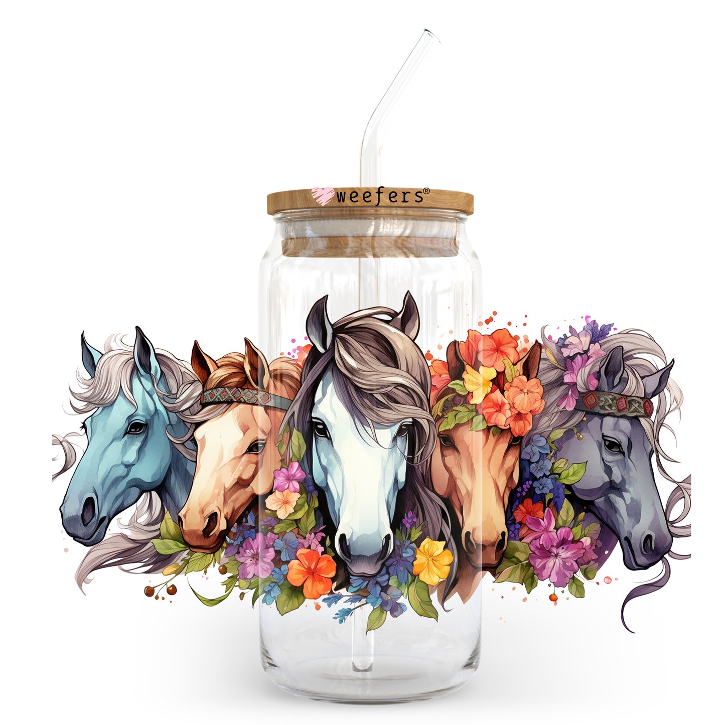 Colorful Horses 20oz Libbey Glass Can UV DTF or Sublimation Wrap Transfer Description