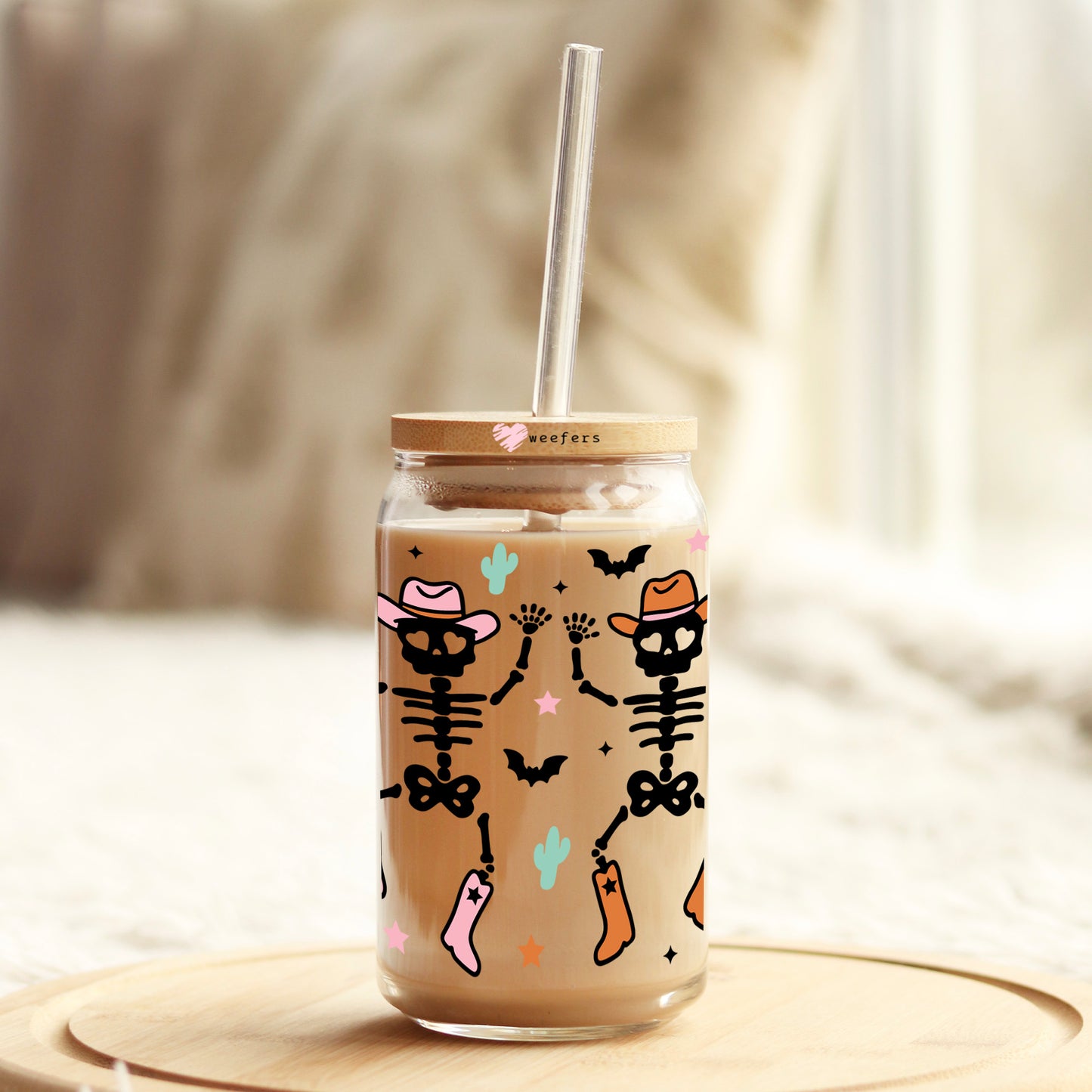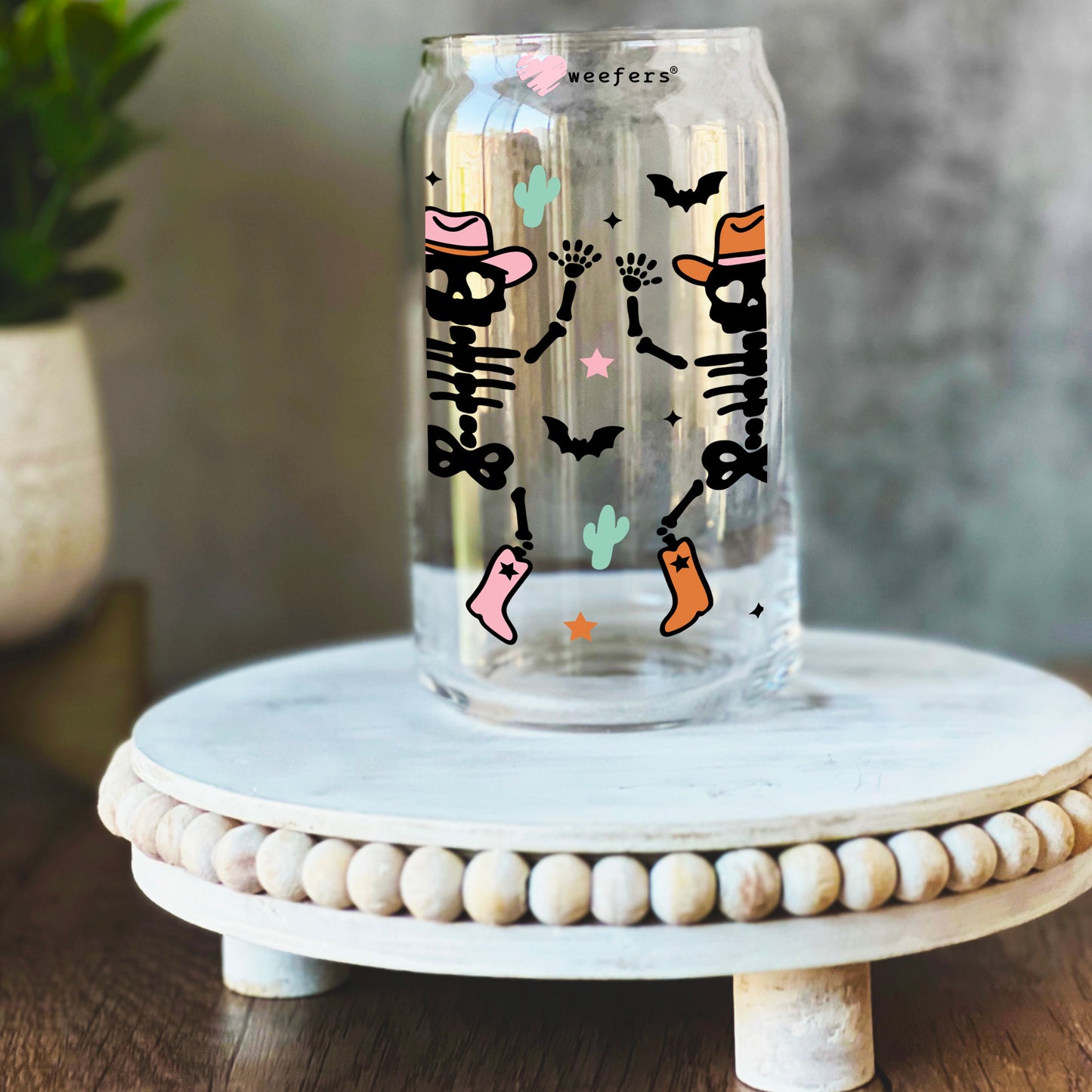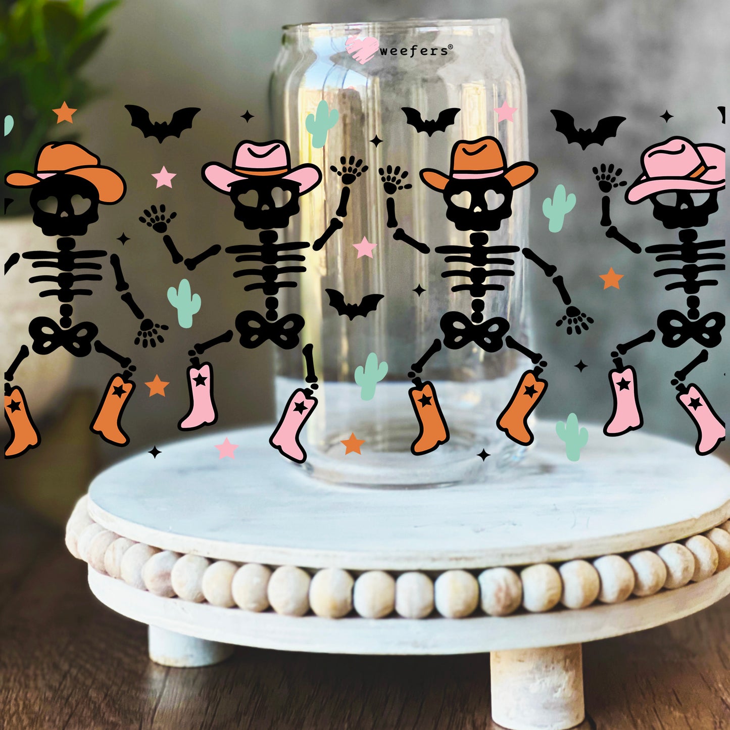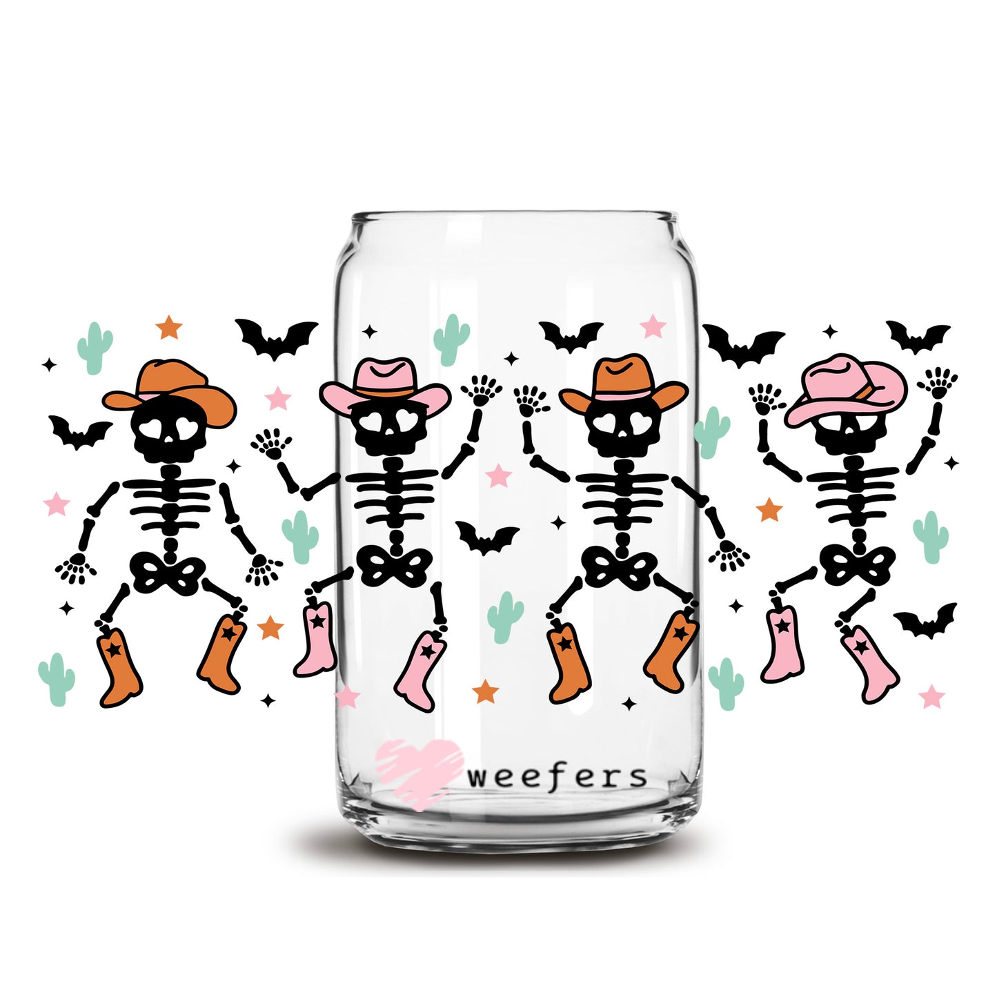 Cowboy Skeletons 16oz Libbey Glass Can UV DTF or Sublimation Wrap Decal Transfer