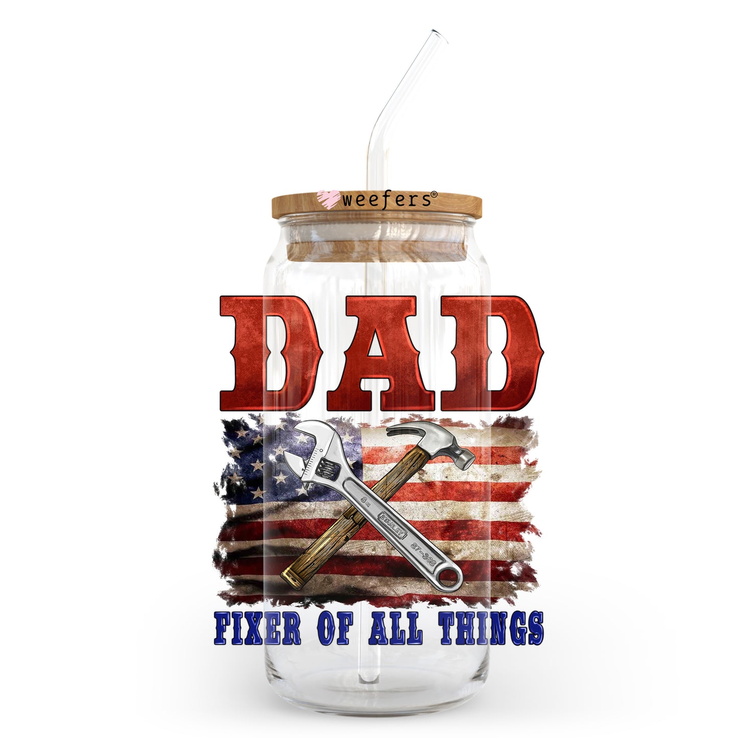 Dad Fixer of All Things 20oz Libbey Glass Can, 34oz Hip Sip, 40oz Tumbler, 24oz Cold Cup UV DTF or Sublimation Decal Transfer Description