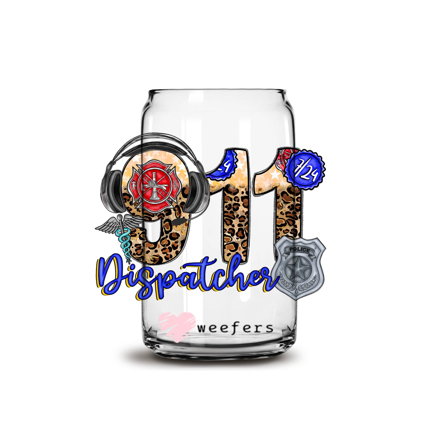 Dispatch 911 16oz Libbey Glass Can UV DTF or Sublimation Wrap - Decal Description