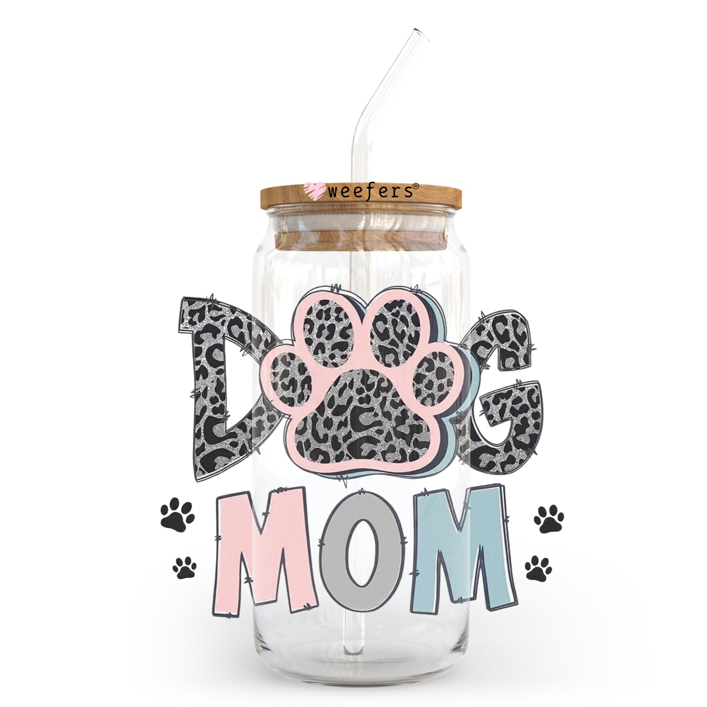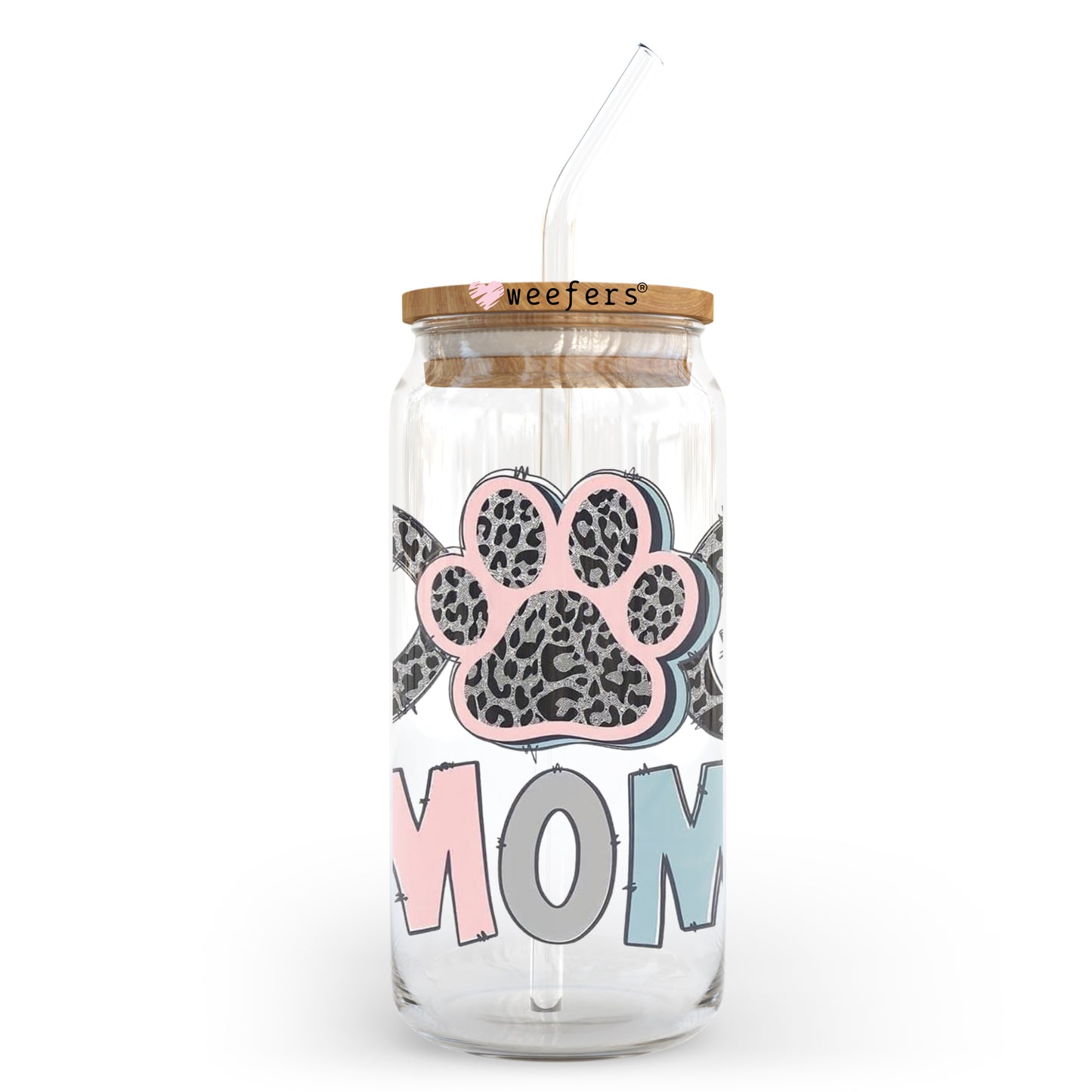 Dog Mom Pink and Blue 20oz Libbey Glass Can UV DTF or Sublimation Wrap - Decal Description
