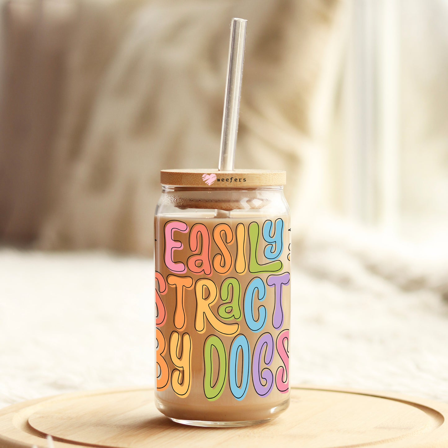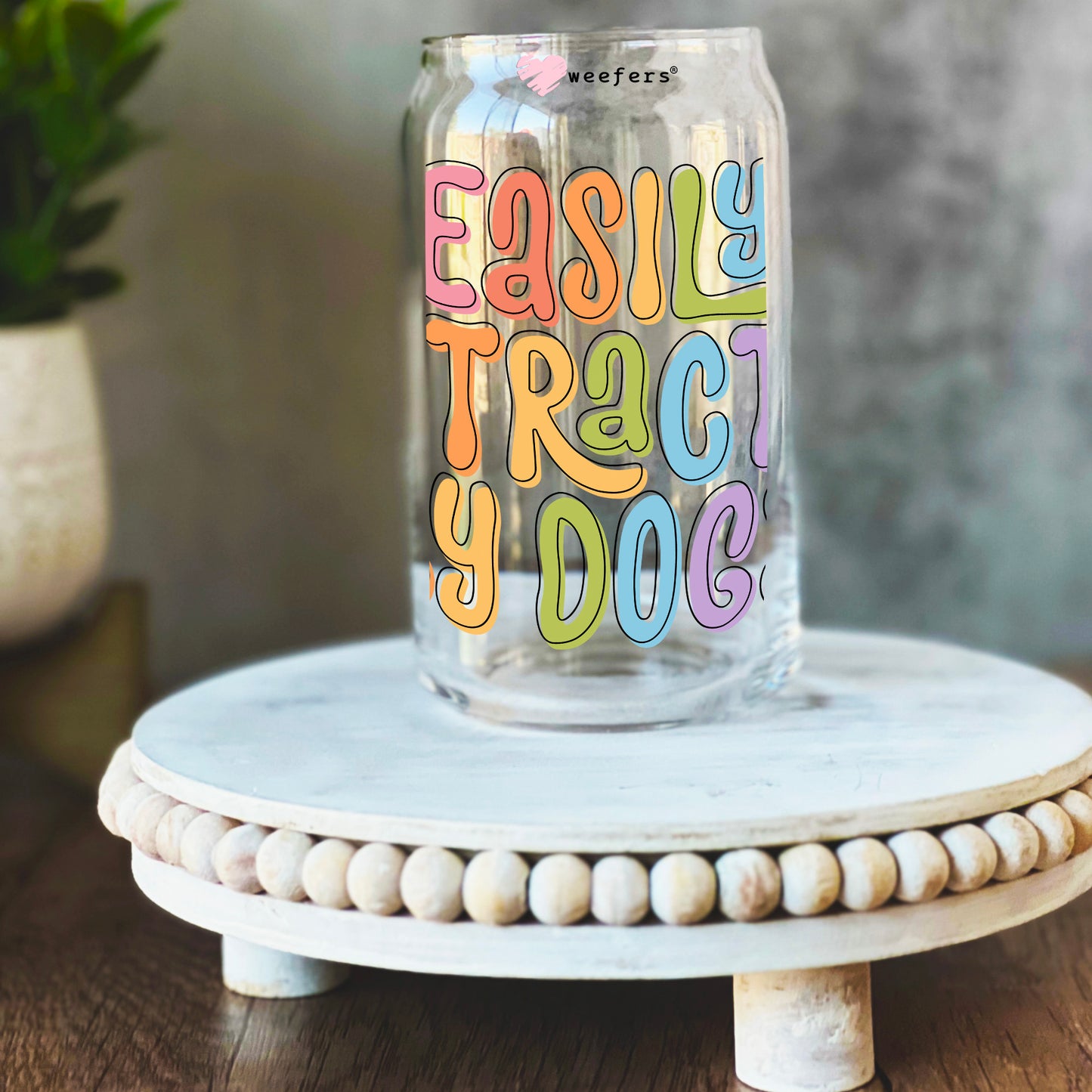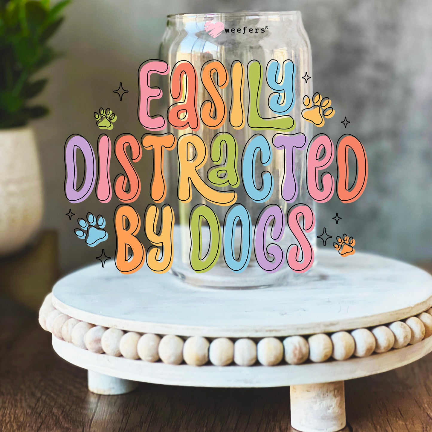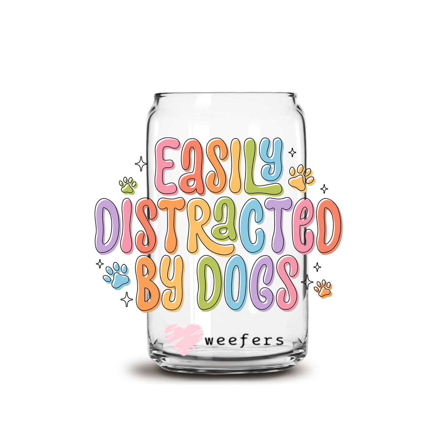 Easily Distracted by Dogs 16oz Libbey Glass Can UV DTF or Sublimation Wrap Decal Transfer Description