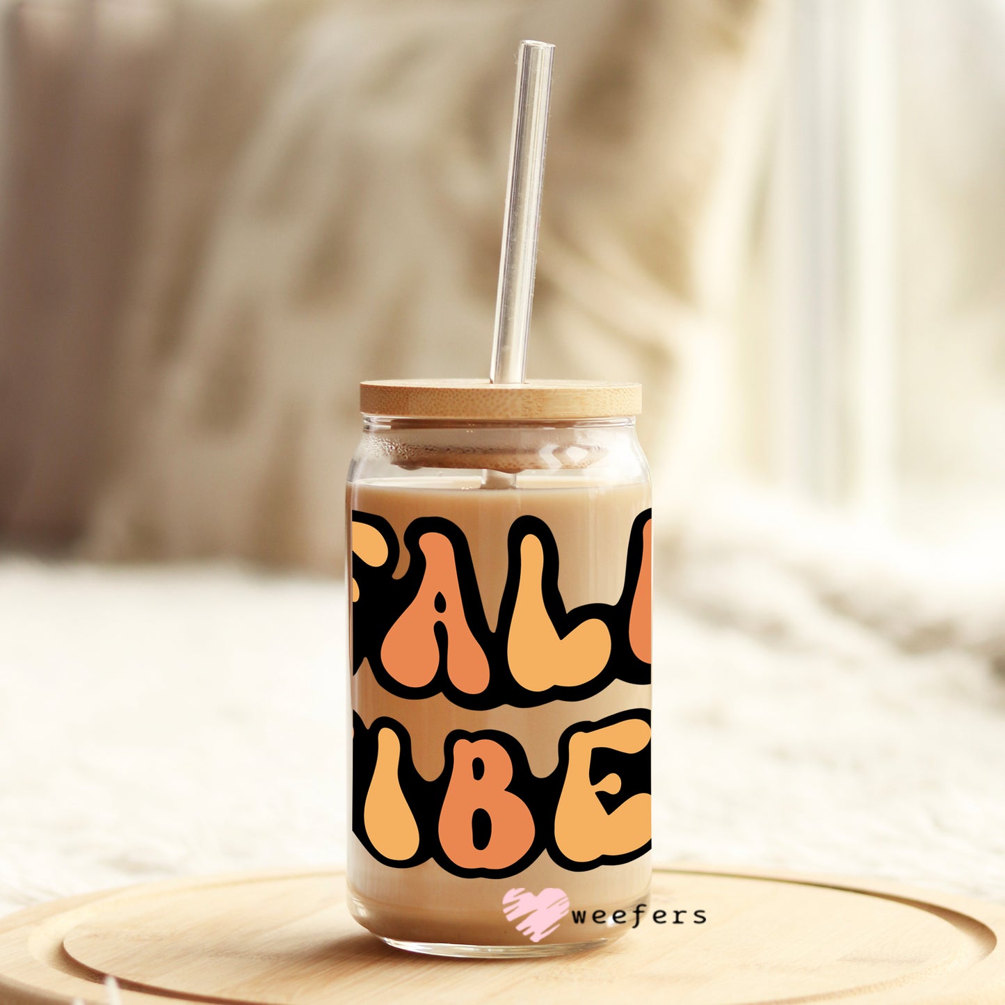Fall Vibes 16oz Libbey Glass Can UV DTF or Sublimation Wrap - Decal Description