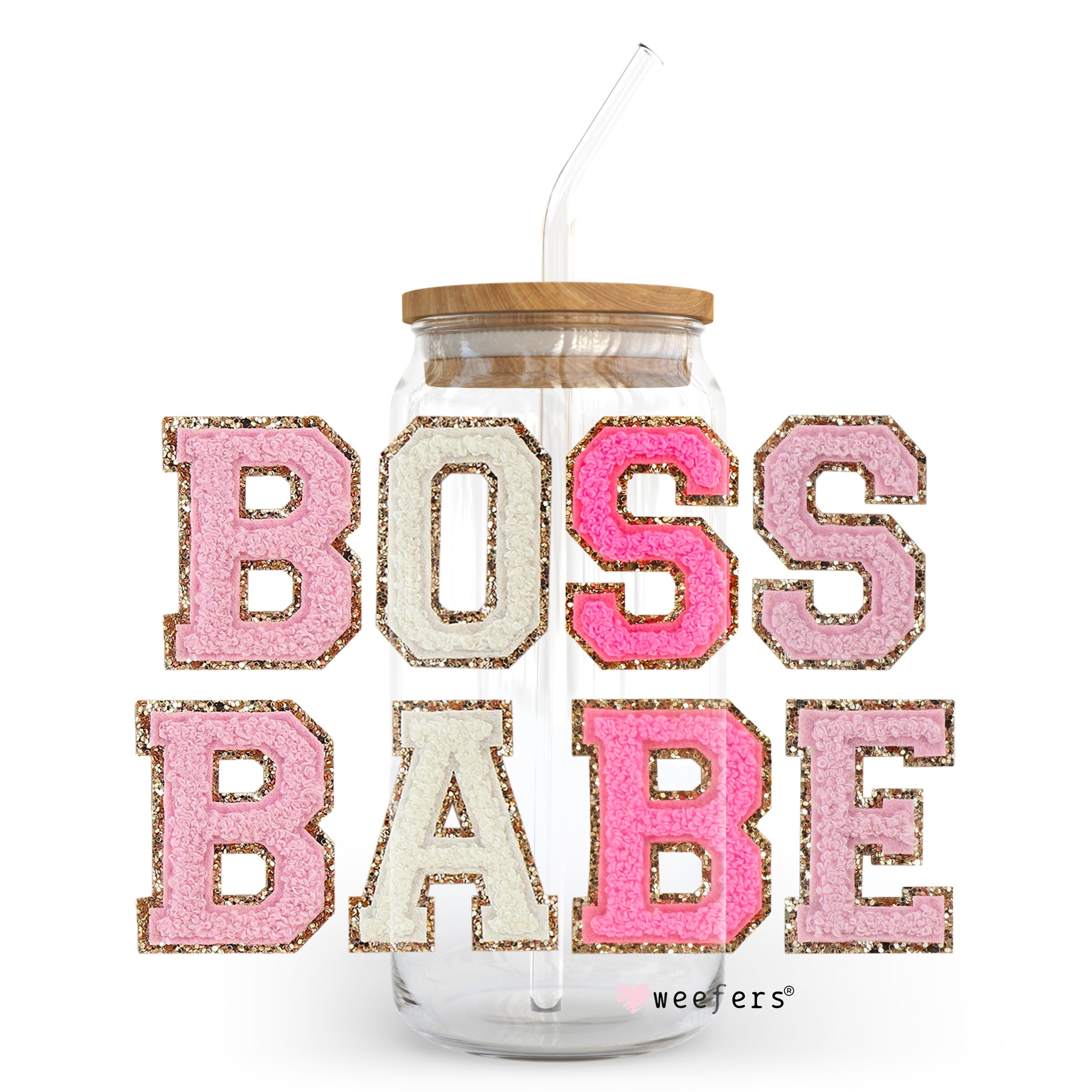 Faux Chenille Boss Babe 20oz Libbey Glass Can UV DTF or Sublimation Wrap - Decal