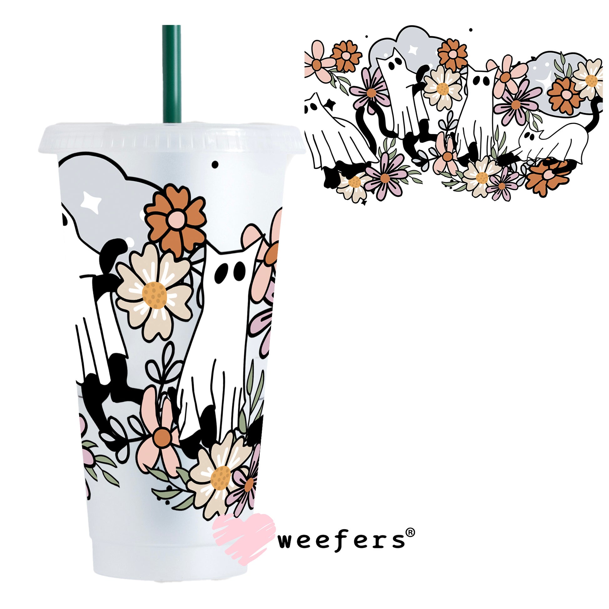 Floral Cat Ghosts UV DTF Cup Wrap Description
