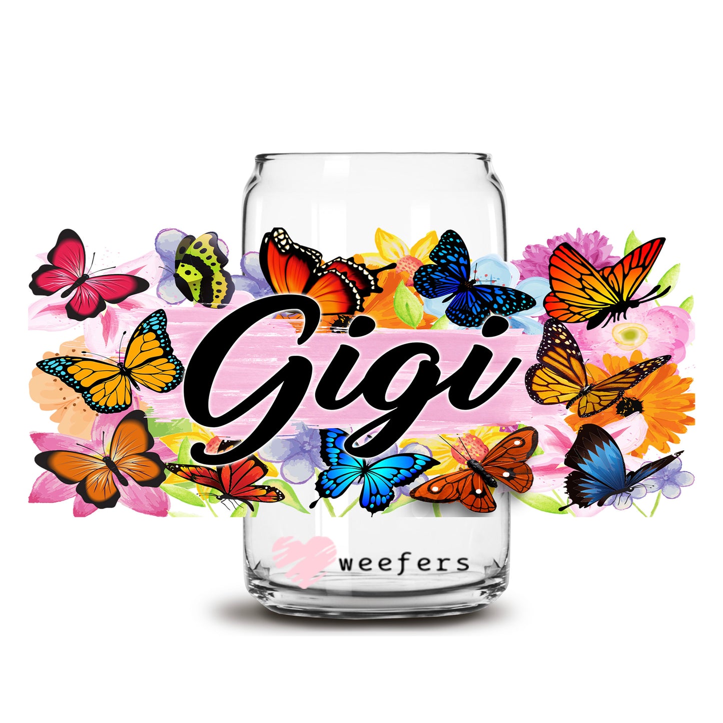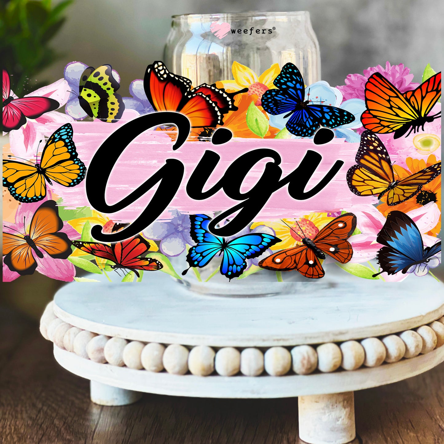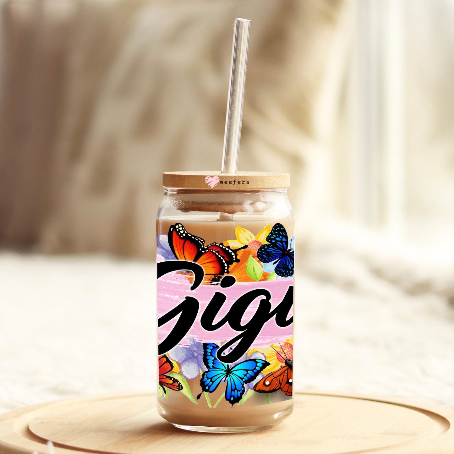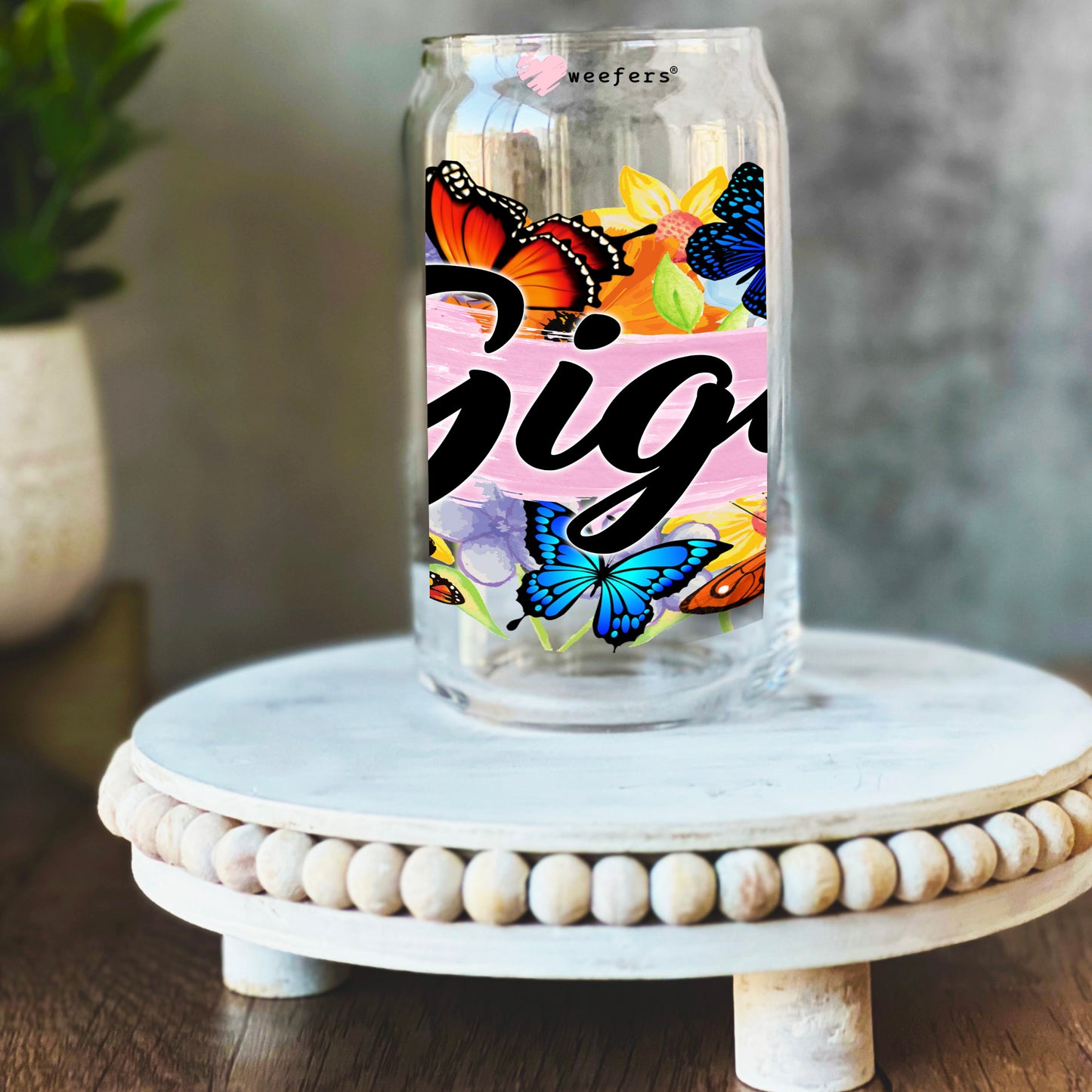 Gigi Colorful Butterflies 16oz Libbey Glass Can UV DTF or Sublimation Wrap Decal Transfer