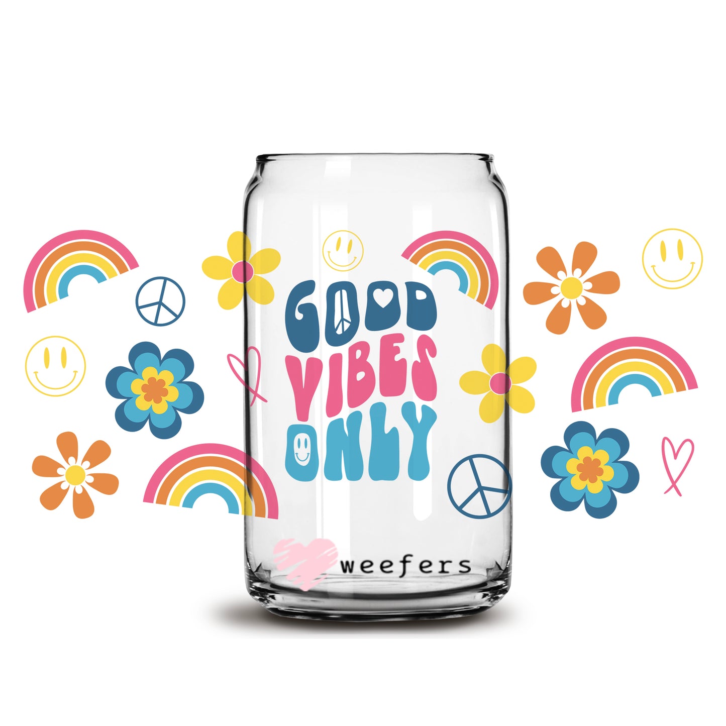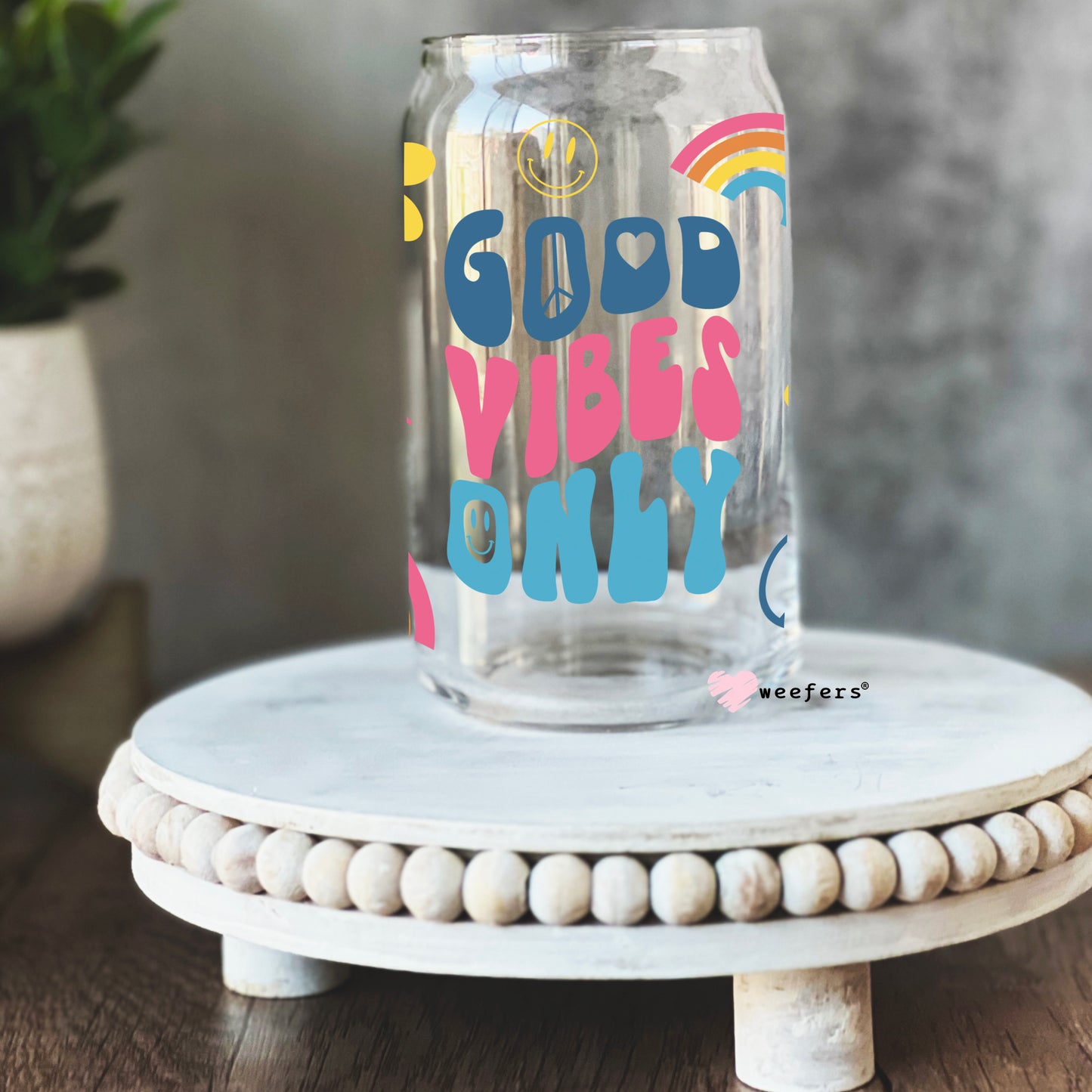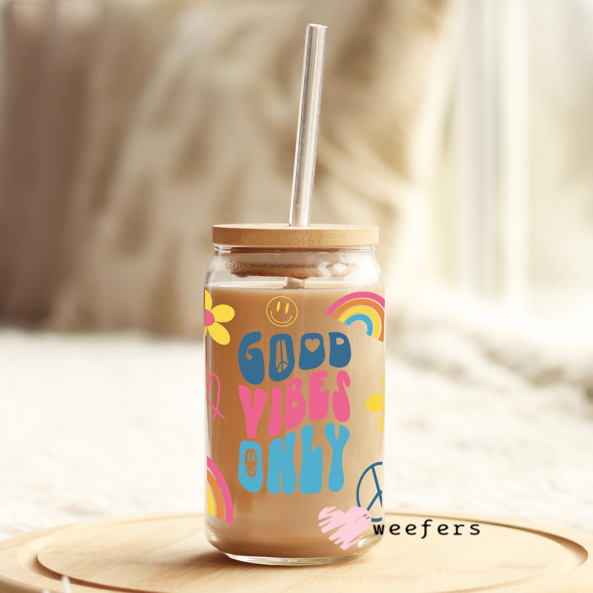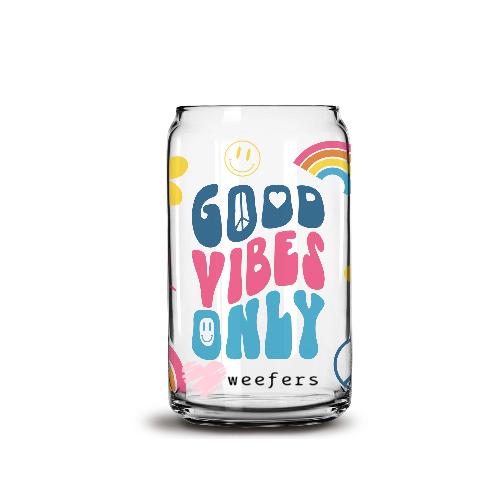 Good Vibes Only Rainbows 16oz Libbey Glass Can UV DTF or Sublimation Wrap - Decal Description