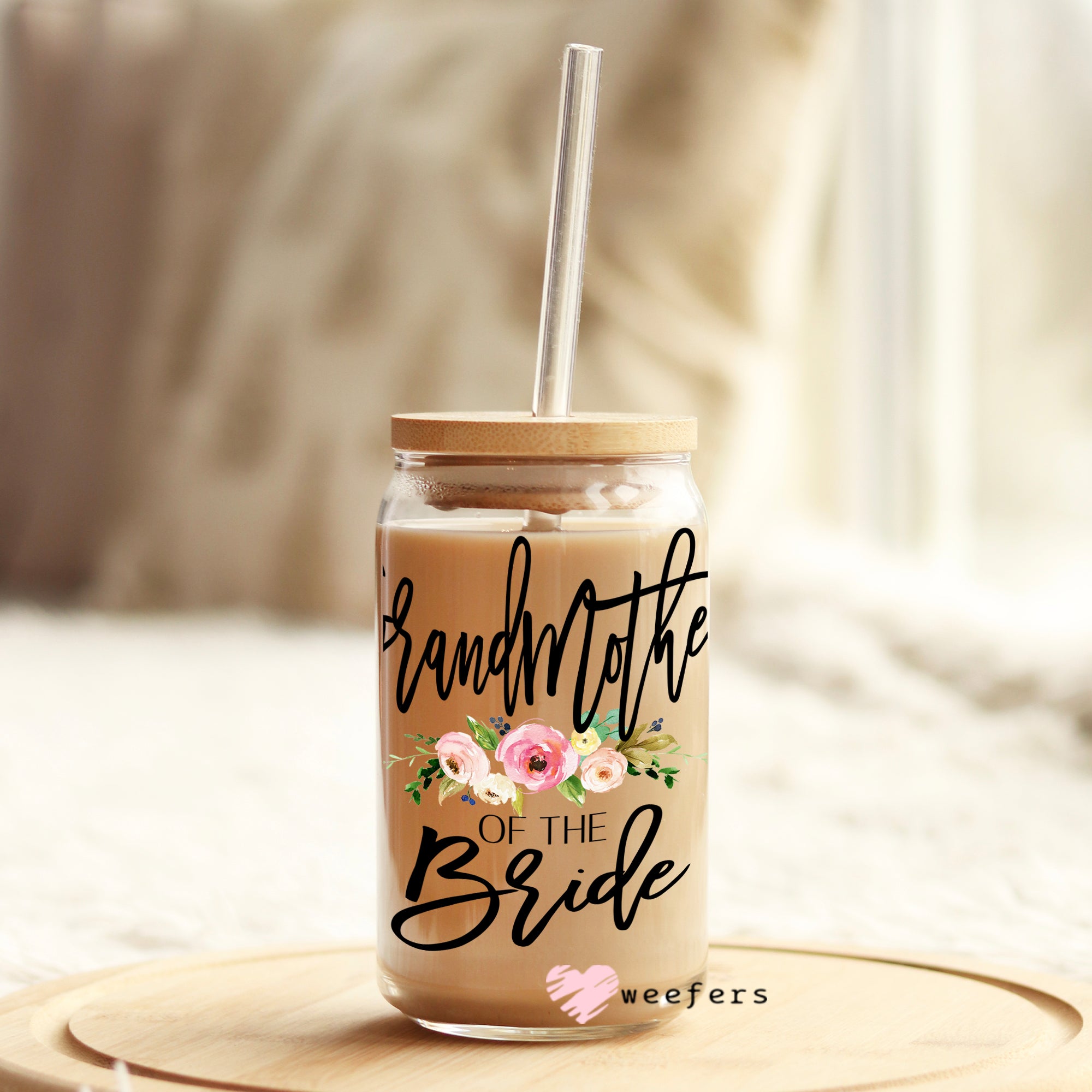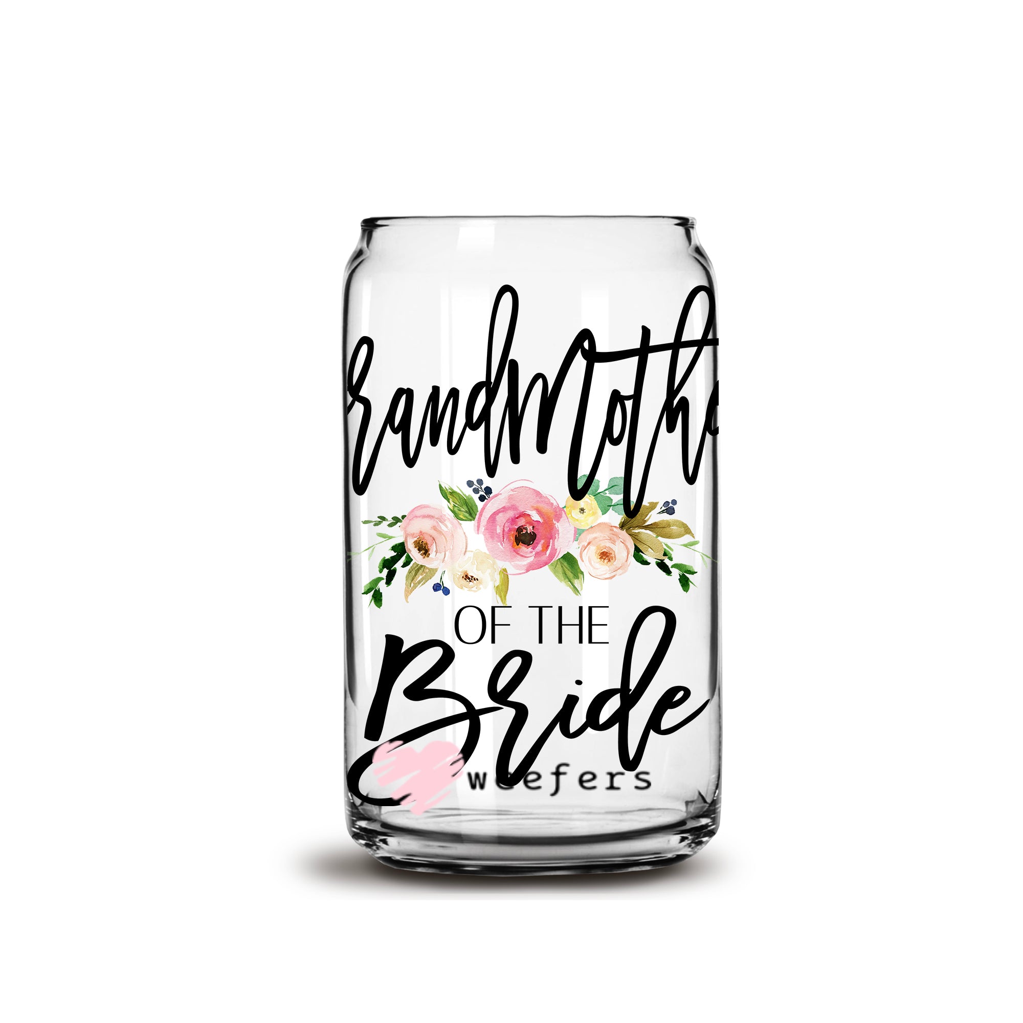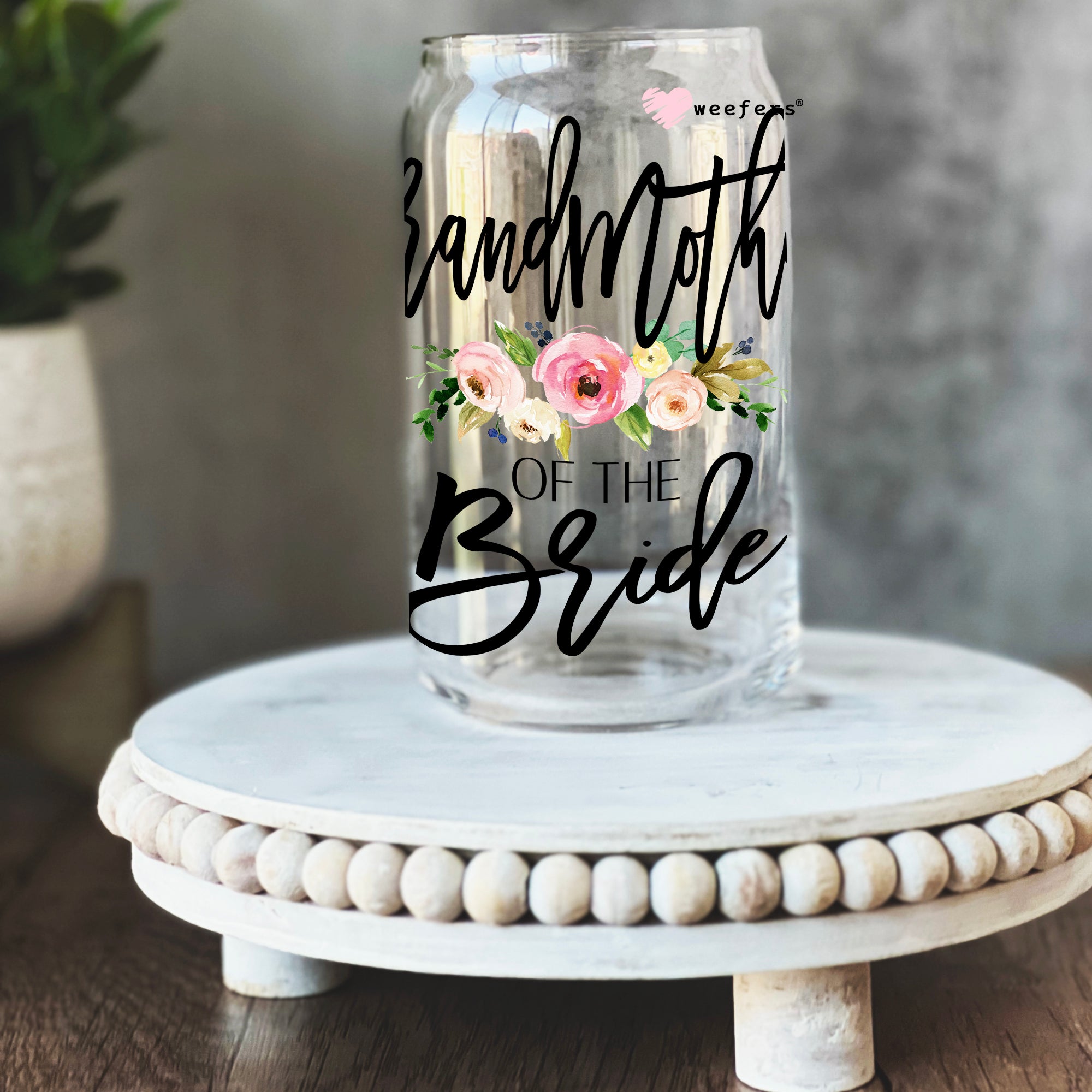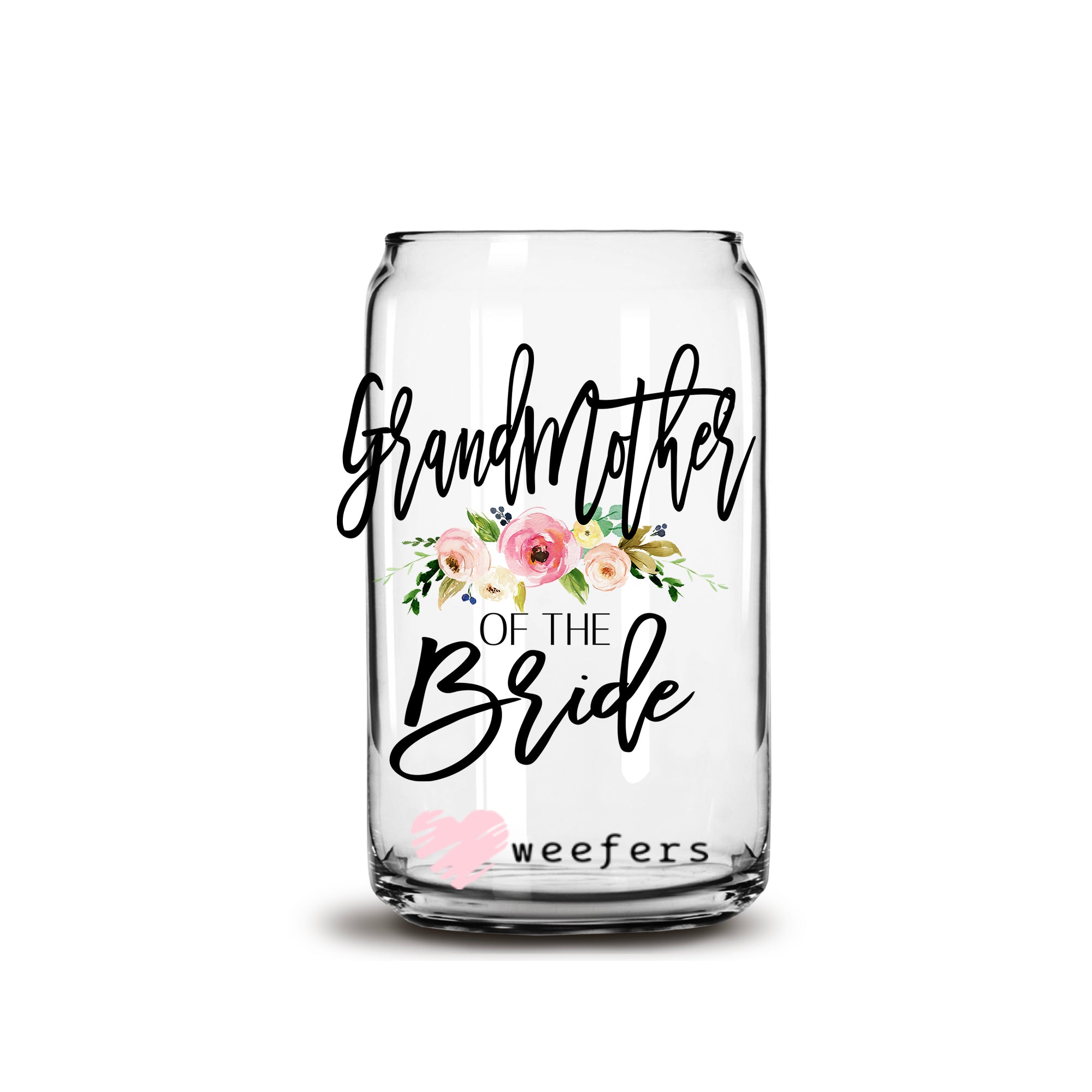 Grandmother of the Bride Blush Floral 16oz Libbey Glass Can UV DTF or Sublimation Wrap - Decal Description