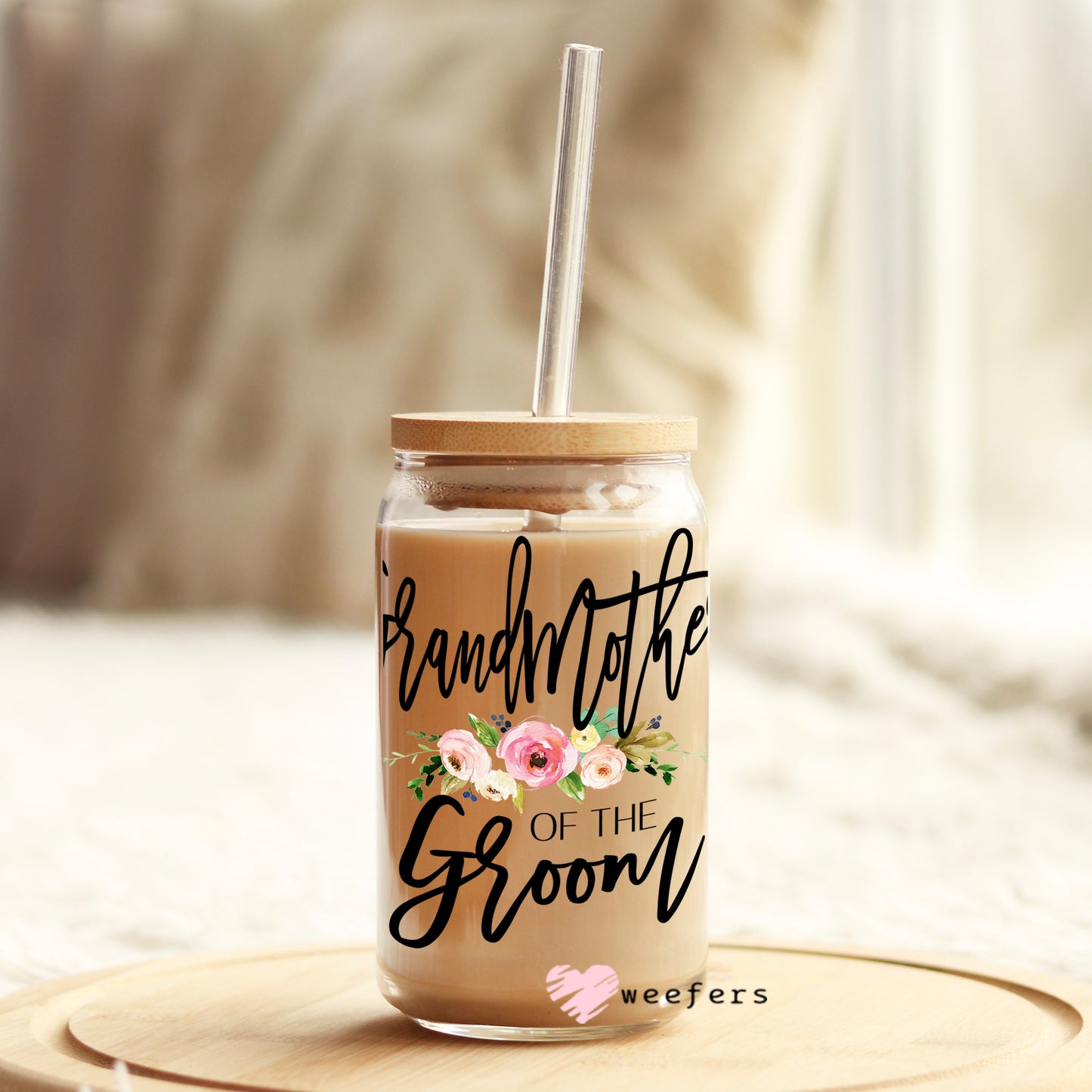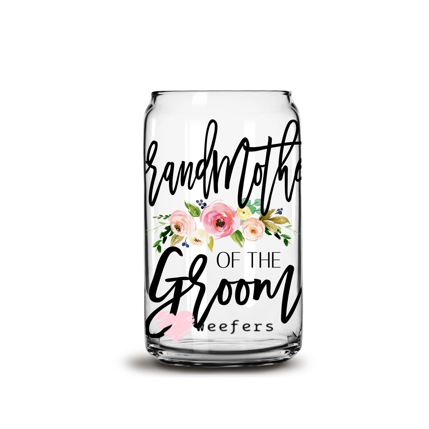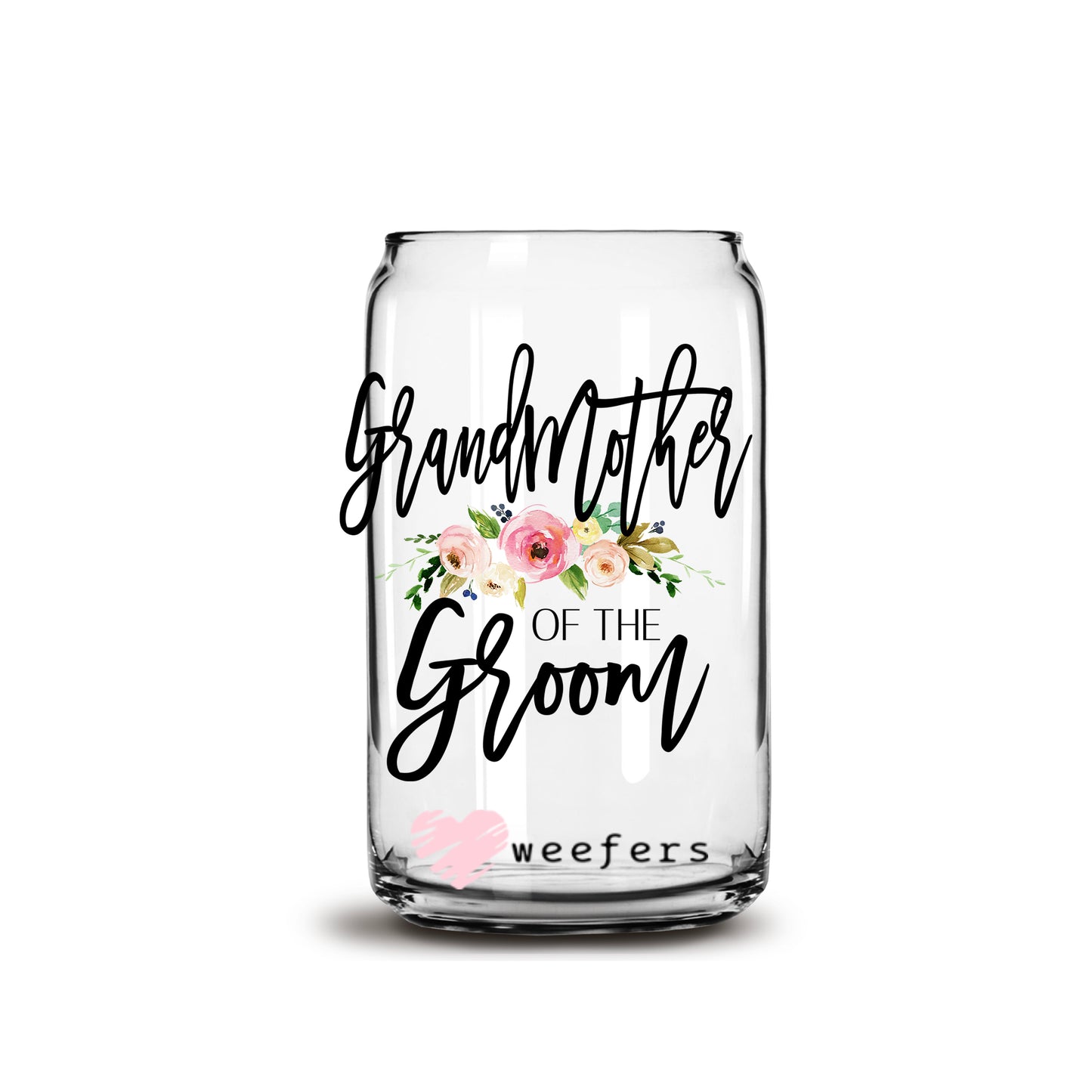 Grandmother of the Groom Blush Floral 16oz Libbey Glass Can UV DTF or Sublimation Wrap - Decal